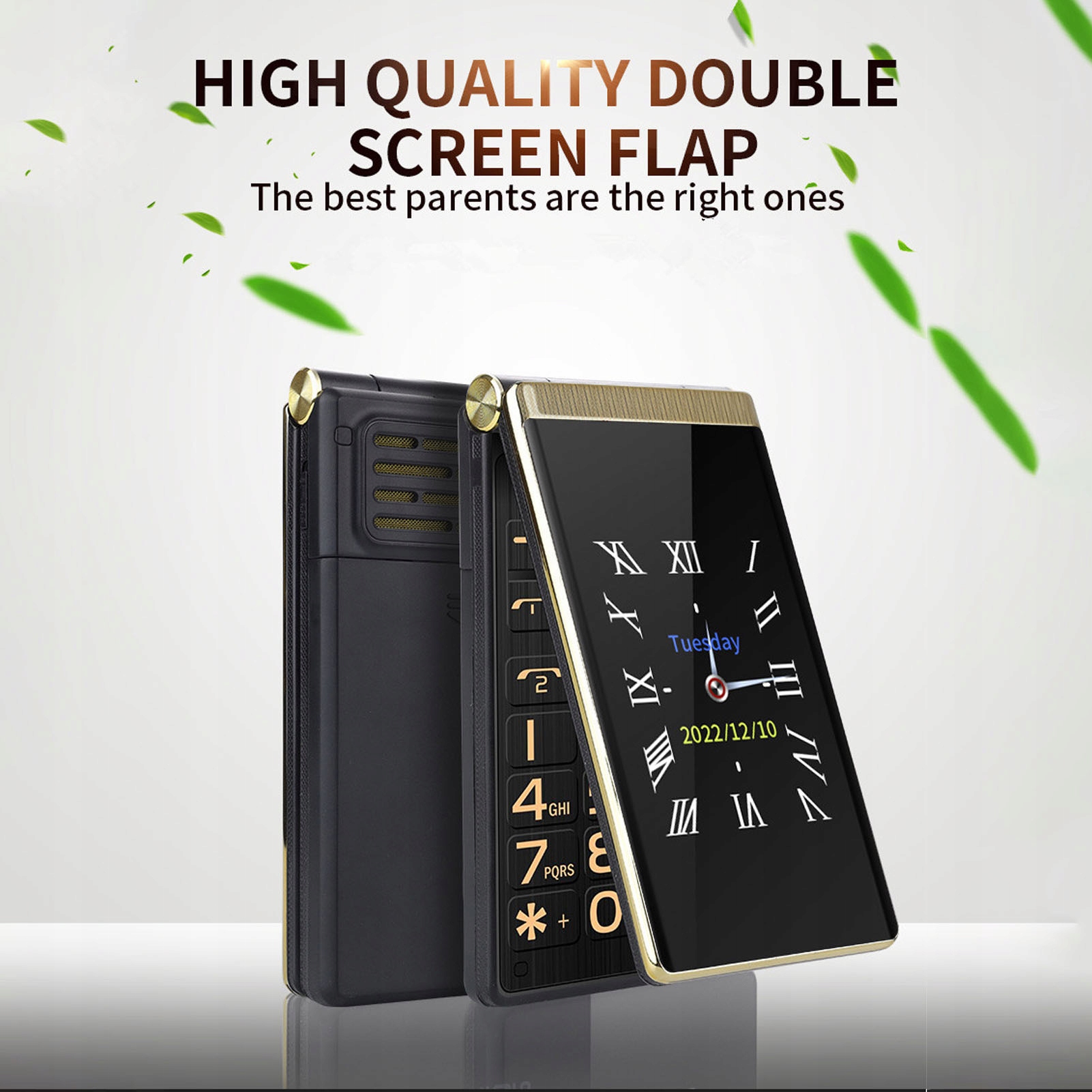 2. Дисплей із подвійним екраном: розкладний телефон має внутрішній 2,4-дюймовий кольоровий HD-екран і 1,77-дюймовий зовнішній дисплей попереднього перегляду, який достатньо великий, щоб легко переглядати та використовувати, а зовнішній дисплей попереднього перегляду дає змогу бачити, хто телефонує, не відкриваючи телефон. Підтримує дві SIM-карти та карти пам’яті з максимальною ємністю 16 ГБ (не входить у комплект).
