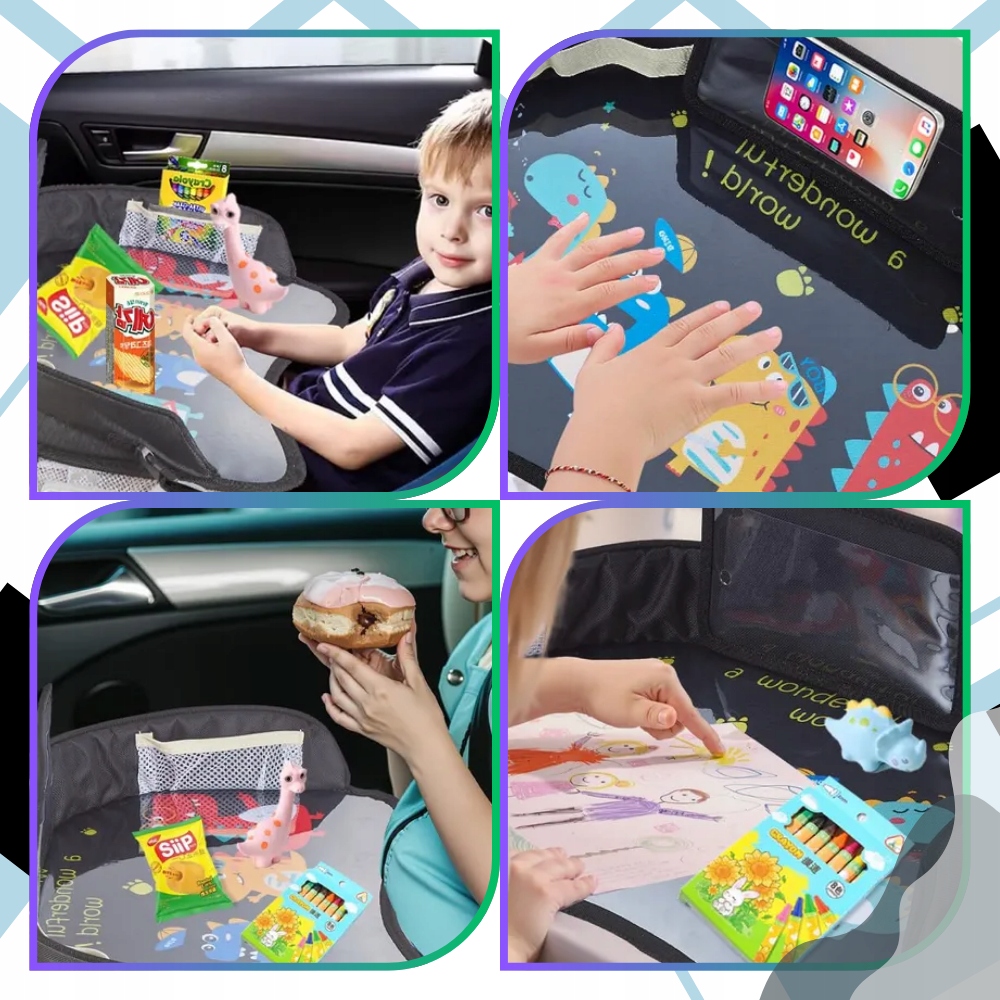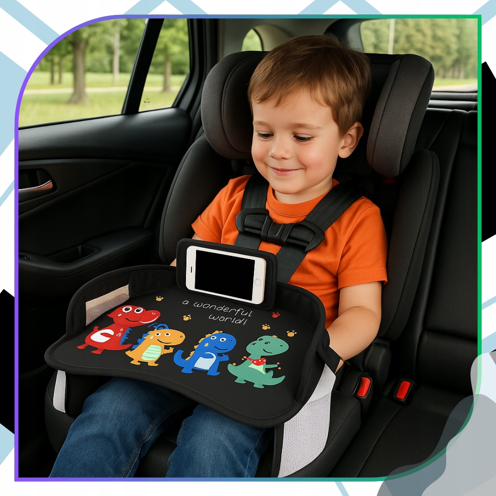 ✅ Поїздки на автомобілі з дітьми можуть бути комфортнішими та спокійнішими. Дитячий дорожній столик, автомобільний органайзер з принтом динозаврів, чорний - практичний аксесуар, який надасть вашій дитині місце для гри, навчання та їжі під час руху. Продукт новий, міцно виготовлений і готовий до використання.