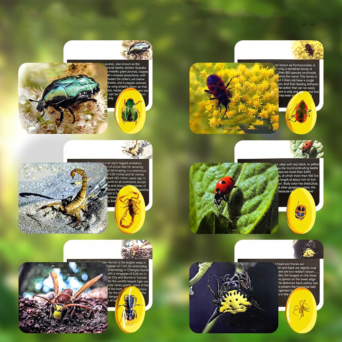 ✔️[Набір для копання бурштину з 19 предметів] Набір для копання комах включає надгробок із 6 випадково вибраними зразками бурштинових комах, 1 долото, 1 невеликий молоток, 1 щітку, 1 пару окулярів, 1 збільшувальне скло, 1 невеликий сітчастий мішечок, 1 рамку для дисплея та 6 навчальних предметів картки на тему комахи.