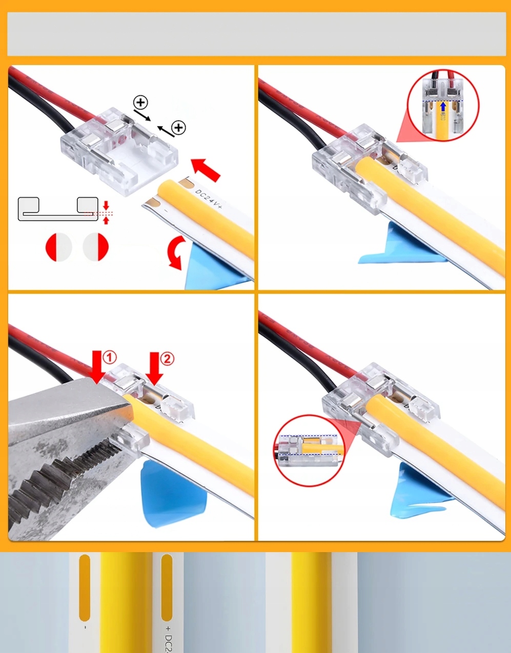 ✅Конектор 14 см для світлодіодних стрічок COB 8 мм конекторний затискач швидкий монтаж двосторонній
