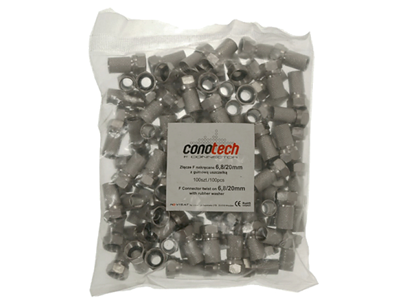 Вилка типу F для кабелю із зовнішнім діаметром 6,8 мм. Оснащений гумовим ущільнювачем (O-ring) для запобігання проникненню вологи.