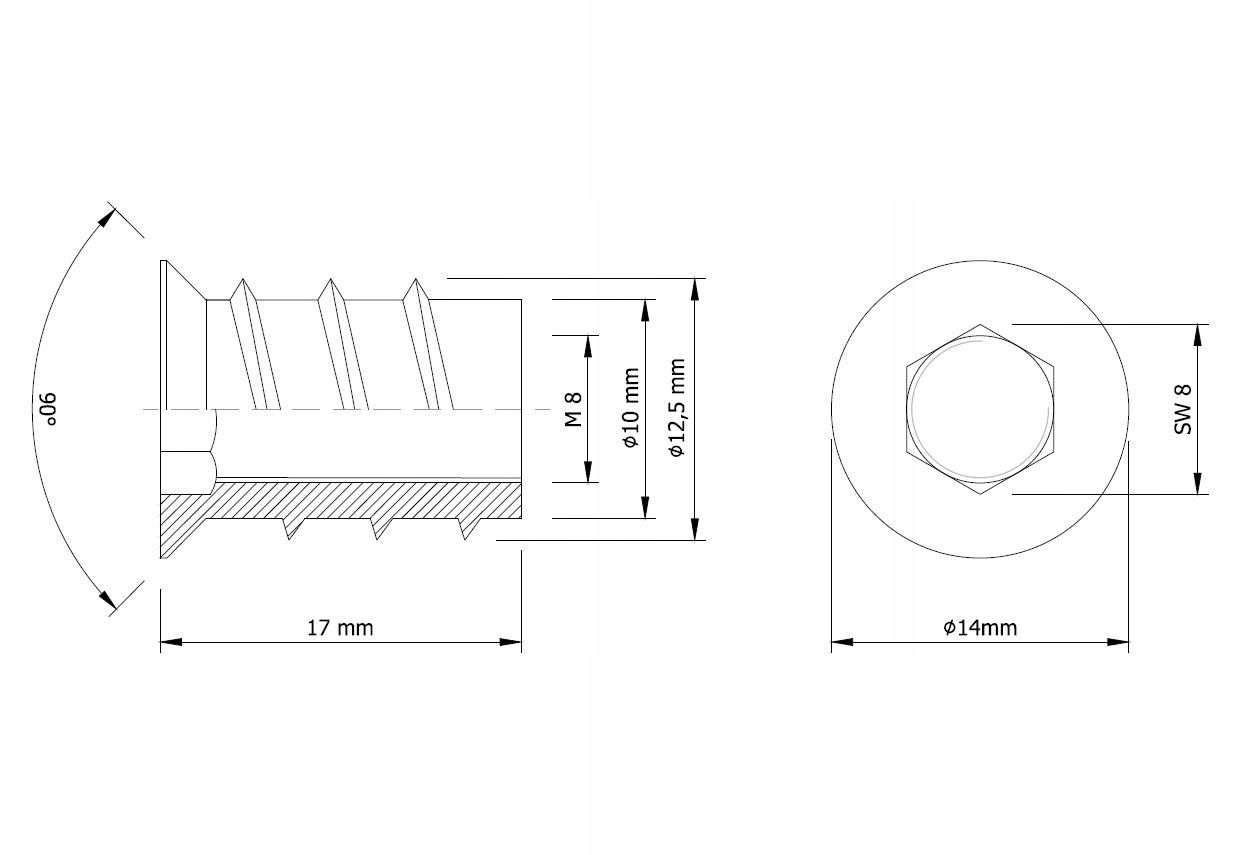 Роз'єм М8 для меблів, сходів, столів, ліжок Ø 35 мм