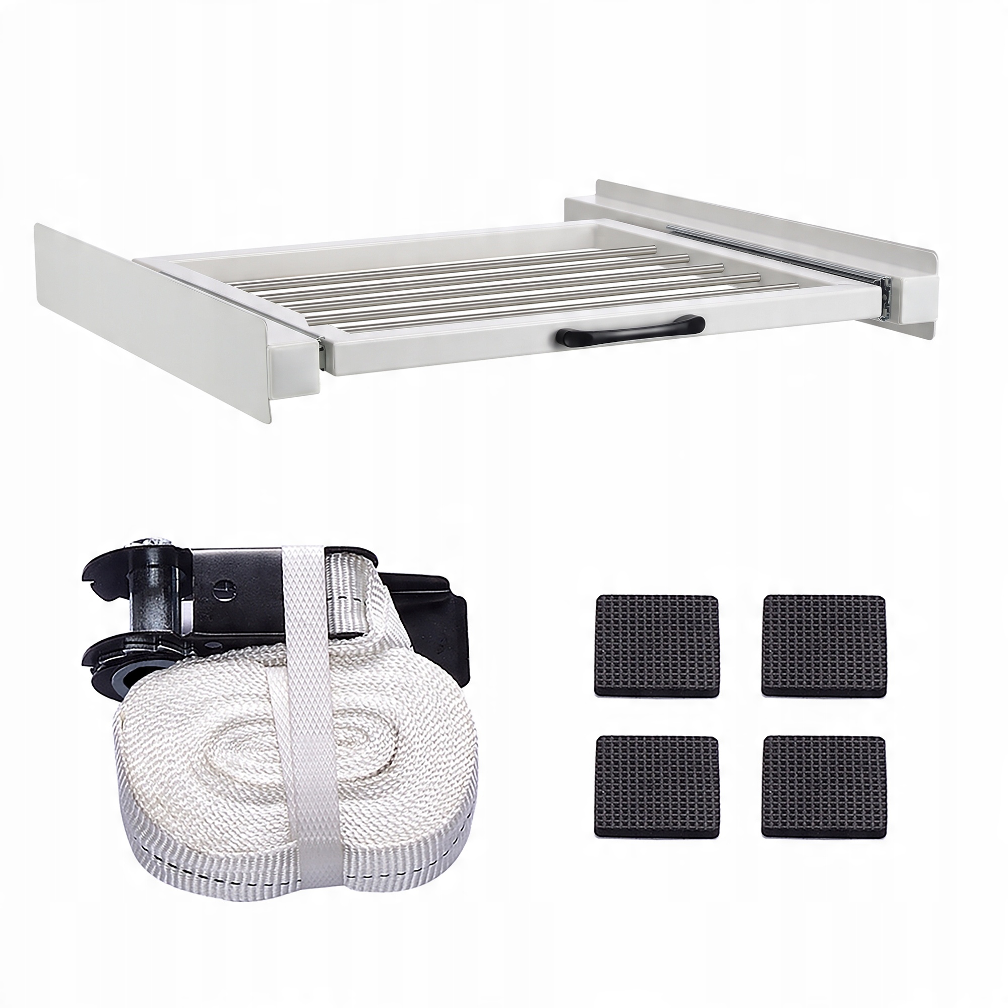 Проміжна рама з інтегрованою висувною вішалкою для рушників гарантує безпечну та стабільну основу, коли ви хочете скласти великі пристрої один на одного для економії місця.