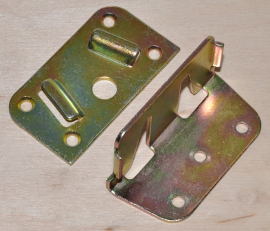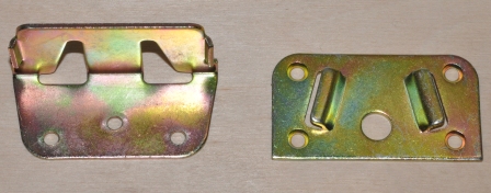 Опис: Спеціалізований середній роз'єм для ліжок. Роз'єм використовується для встановлення центральних рейок у ліжки, що підтримують матрац. Роз'єм використовується для створення міцних і жорстких з'єднань і в той же час надання можливості розгортання ліжка. Роз'єм складається з двох елементів, з яких квартира накручується до конструкції ліжка та кута до дошки, що підтримує матрац для ліжка. Кутовий роз'єм з'єднується з квартирою через просочення. Покриття цинку жовтим проходженням.