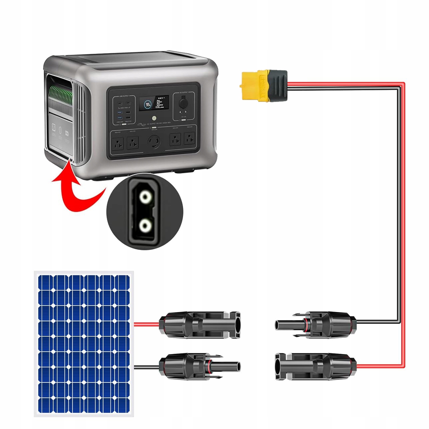 Цей високоякісний адаптер заряджання з роз’ємом XT60 є ідеальним рішенням для ваших потреб в енергії. Завдяки міцній конструкції та широким можливостям сумісності це чудовий вибір для користувачів сонячних панелей.
