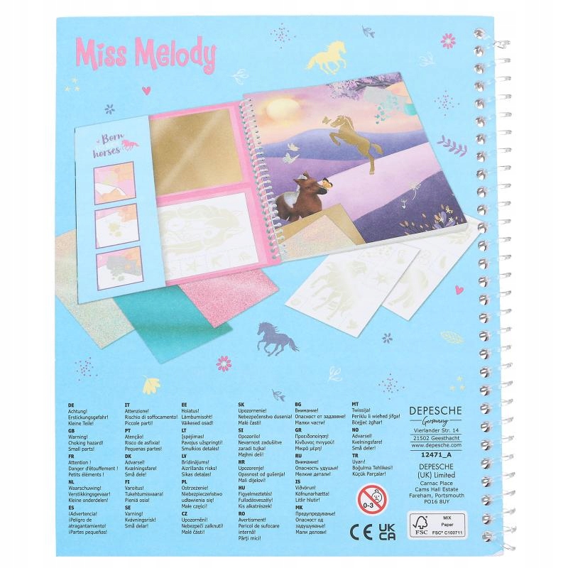 Книжкова книга та блиск про міс Мелоді, з блискучими фольгами та наклейками на татуювання.