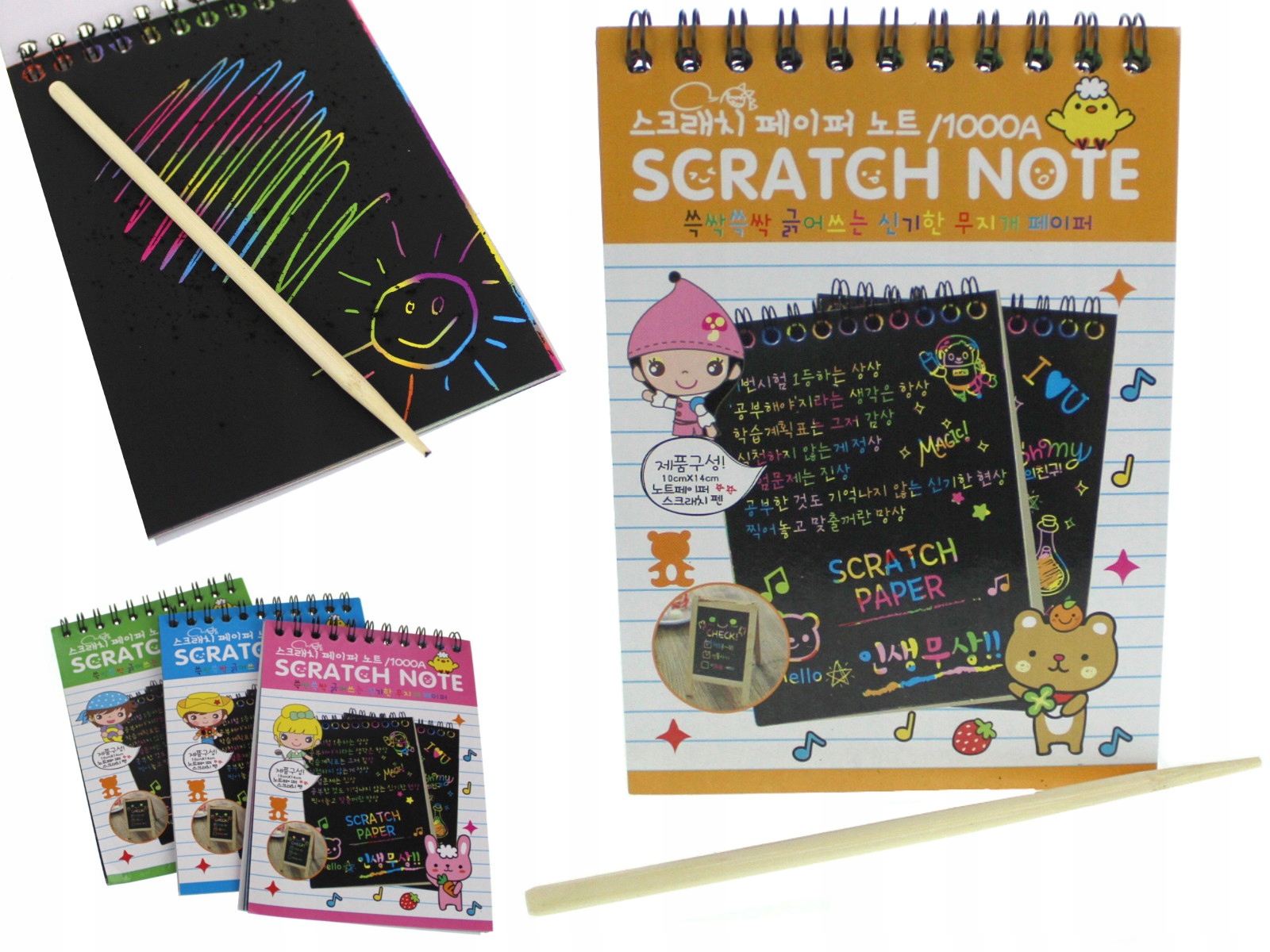 "Скретч-гра для дітей із 10 картками та дерев’яною паличкою. Відкрийте двері для творчих ігор і відкриттів за допомогою цієї скретч-гри. Кожна скретч-гра має веселковий фон, який можна відкрити за допомогою дерев’яної палички , додаючи грі інтерактивний вимір.