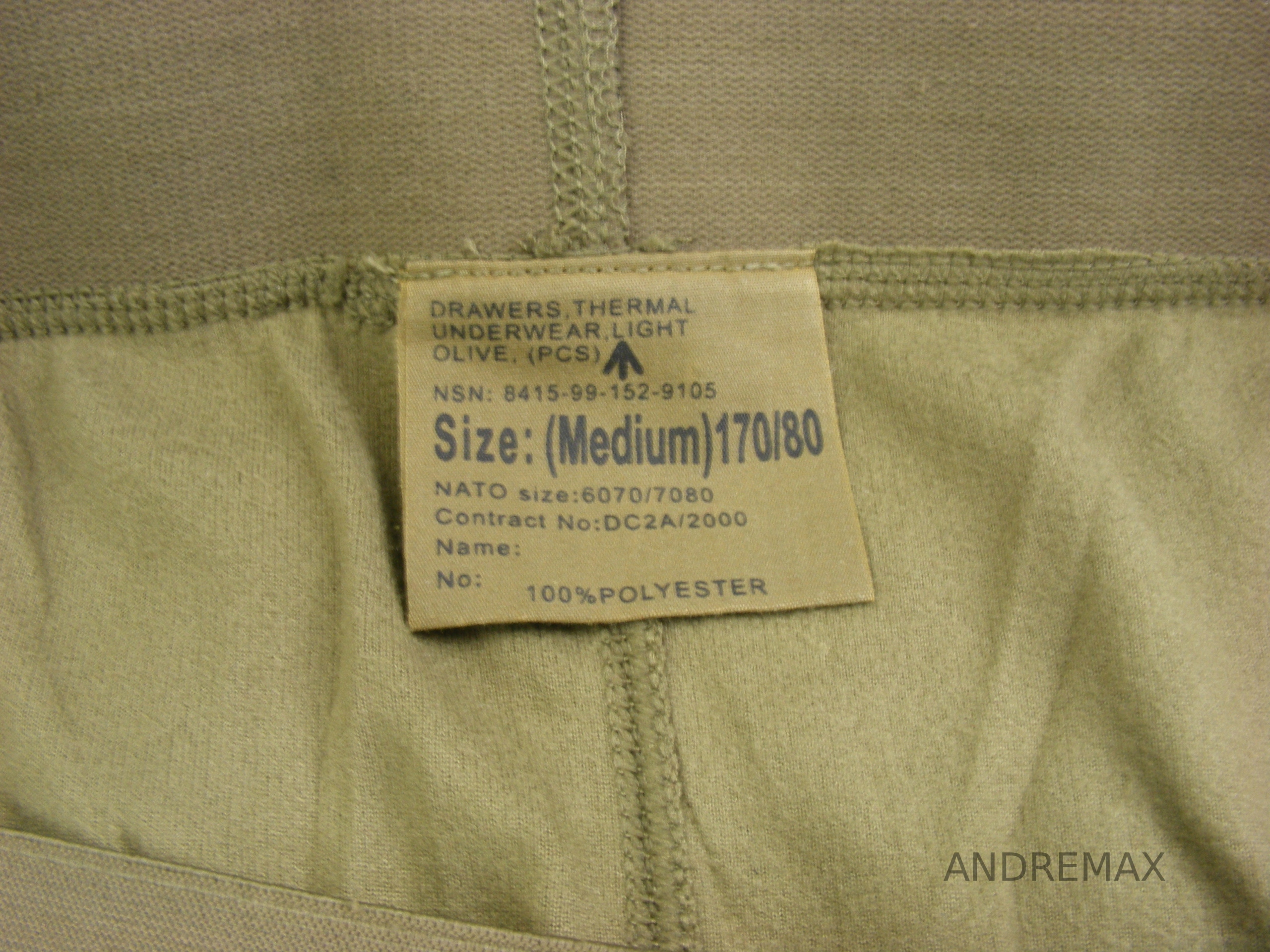 Розмір нижньої білизни Military Thermoactive Long Johns. L шт