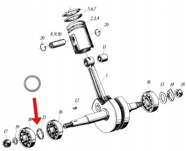 РОЗМІРНА ШАЙБА ДЛЯ ПІДШИПНИКІВ ВАЛА ROMET KOMAR MOTORINE