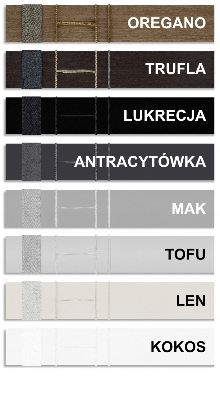 4 Декоративна стрічка доступна для жалюзі з шириною хв. 60 см. 4▶ кольорів текстилю ми зазвичай вибираємо колір, подібний кольору сліпих, але ви можете вибрати інший колір, наприклад Кокосові жалюзі, ви можете замовити текстиль солодки.
