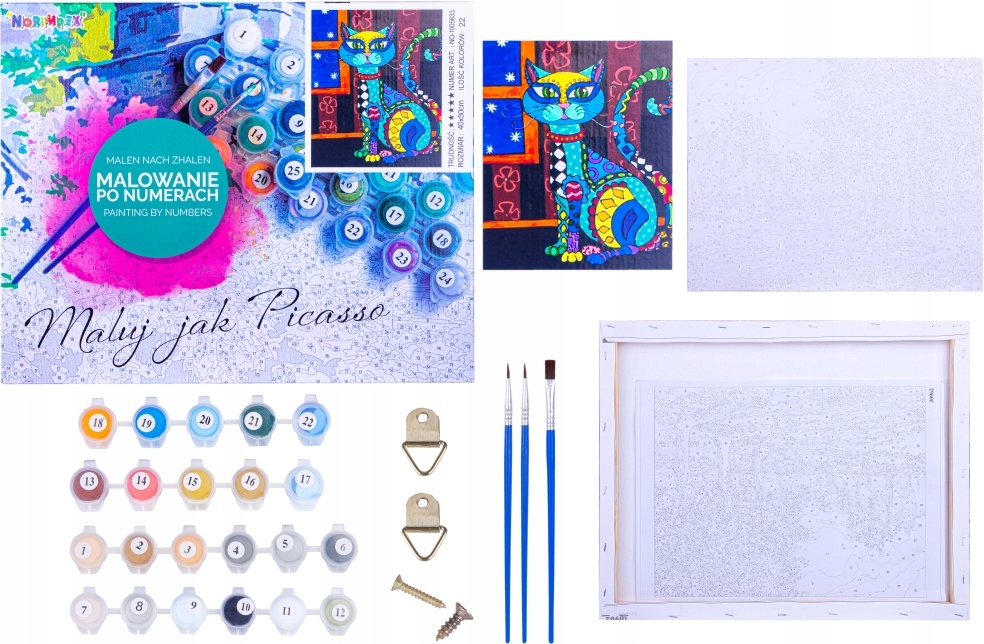 Зображення поділено на сегменти, надруковані на полотні. Кожен позначений номером, що відповідає певному кольору. Розфарбуйте кожен сегмент відповідним кольором, і ви отримаєте справжній шедевр, створений своїми руками.