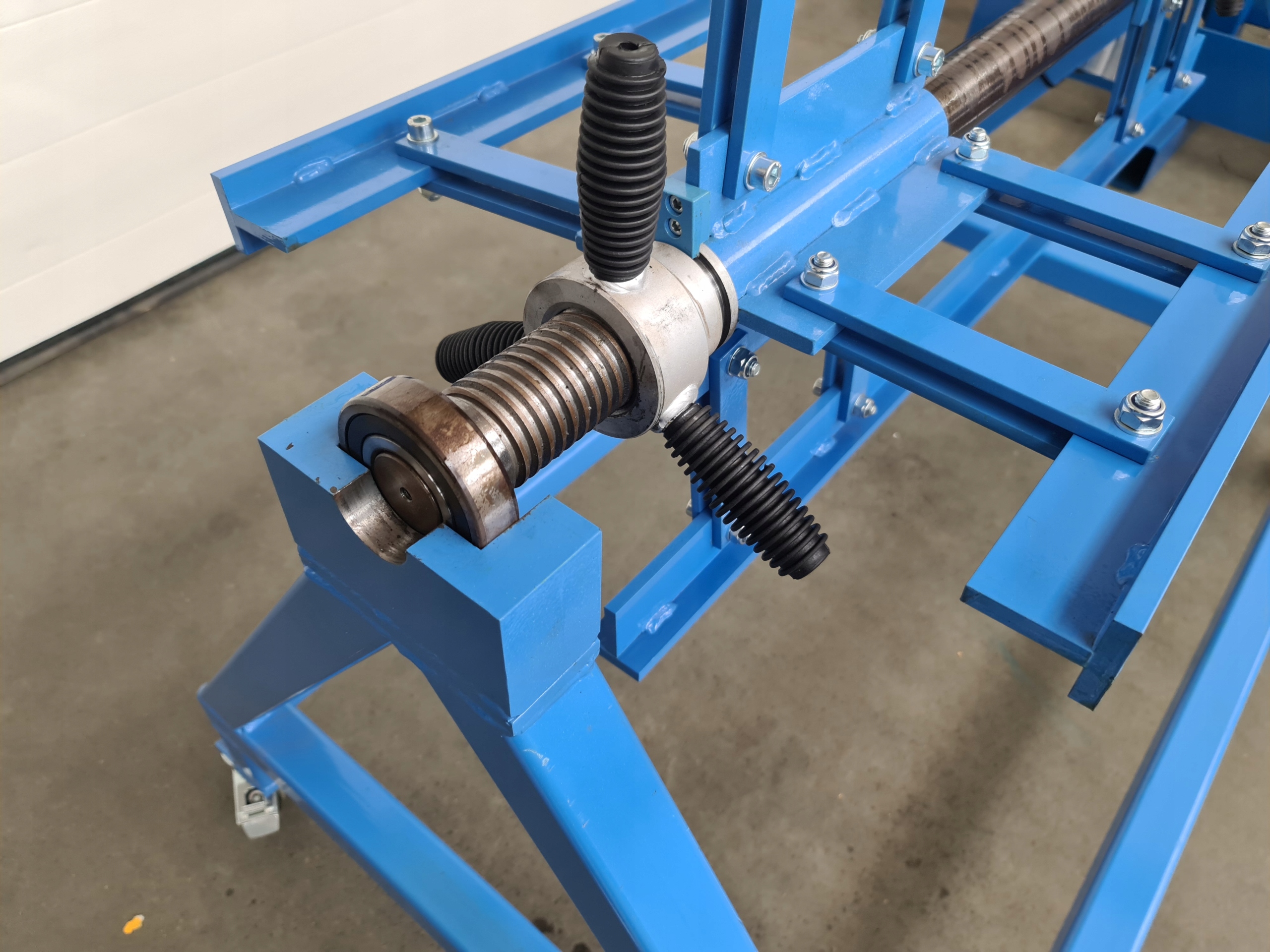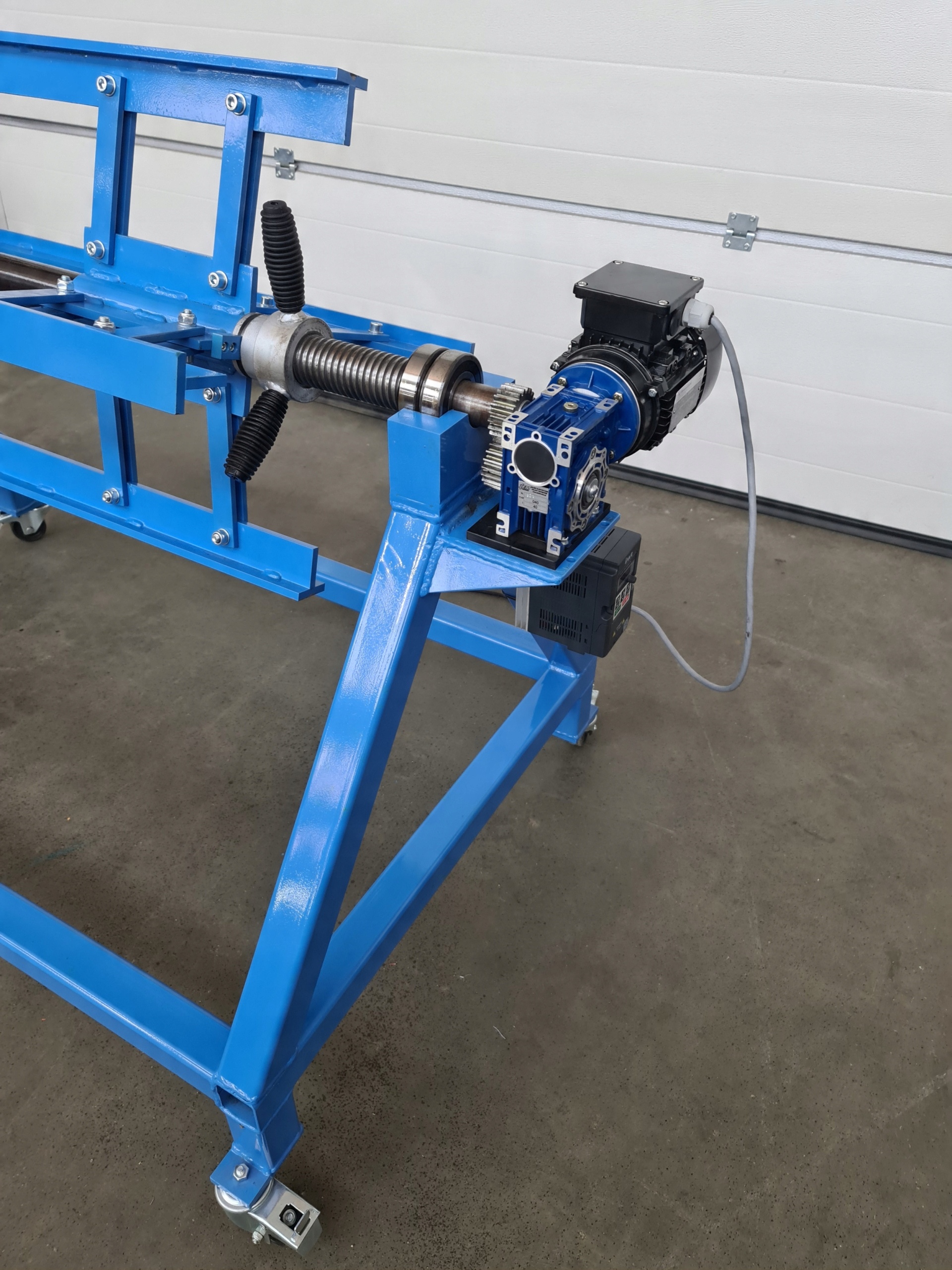 Розмотувач листового металу шириною до 1250 мм і вагою до 3000 кг. Основа розмотувача має жорстку конструкцію зі сталевих профілів. Верхню частину можна зняти з розмотувача для установки всередину котушки. Розмотувач має систему, яка гальмує імпульс котушки під час розмотування. Можлива установка двигуна з регулюванням обертів. Вага повного розмотувача становить 300 кг.