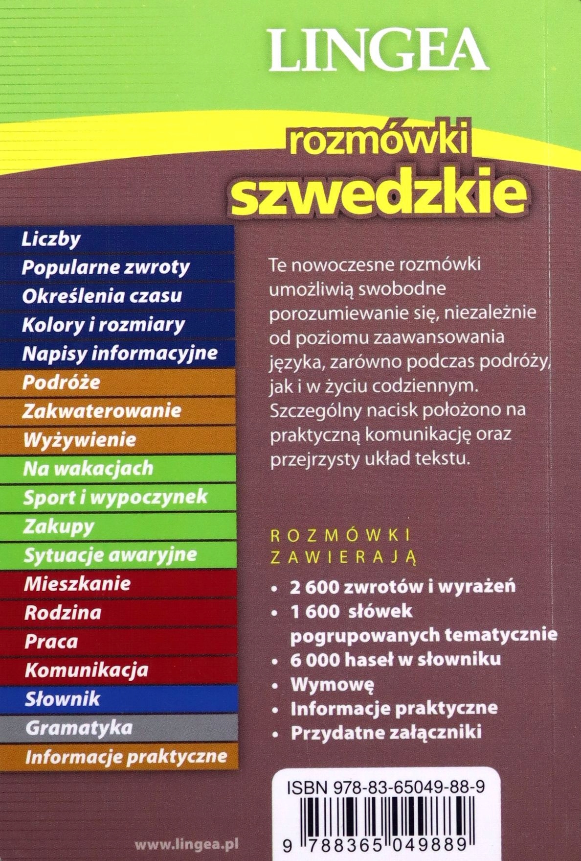 Польсько-шведський розмовник Lingea містить усе, що вам потрібно під час подорожей. Ми зібрали фрази, які допоможуть вам зорієнтуватися в дорозі, під час пошуку ночівлі або в аеропорту та на вокзалі. Увечері вам буде легше сходити в ресторан, бар або пройтися по магазинах. Також ми включили пояснення інформаційних написів, назв днів тижня, кольорів і цифр.
