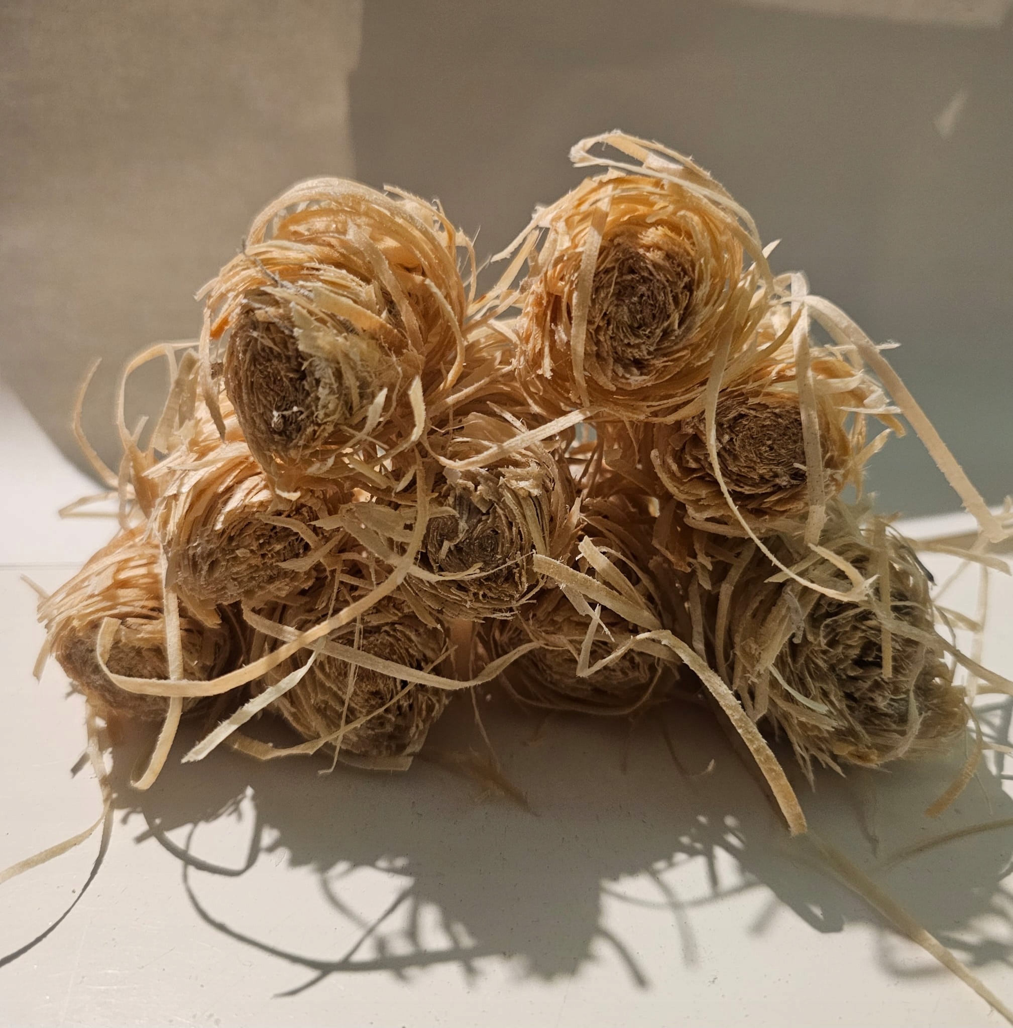 Трут з деревної вовни, просоченої натуральним воском, згорнутої в мотки.