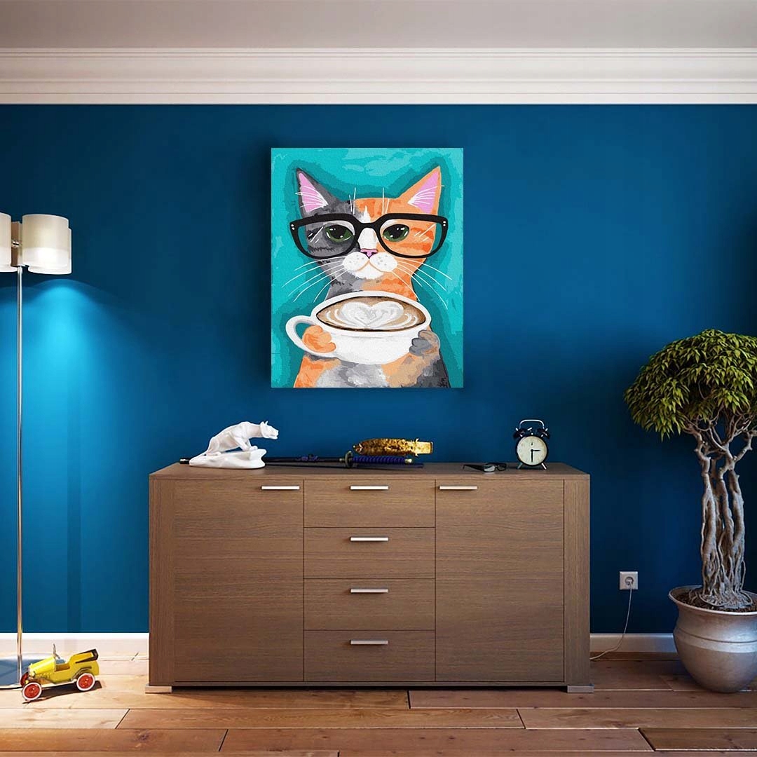 Набір для малювання за номерами Кот і Латте 40х50 см на дерев'яному підрамнику