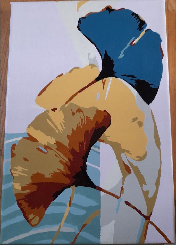 Приклади вже намальованих картин (20x30 см - перша, решта: 40x50 см) від тих же постачальників нижче: листя, жираф, кінь, Венеція.