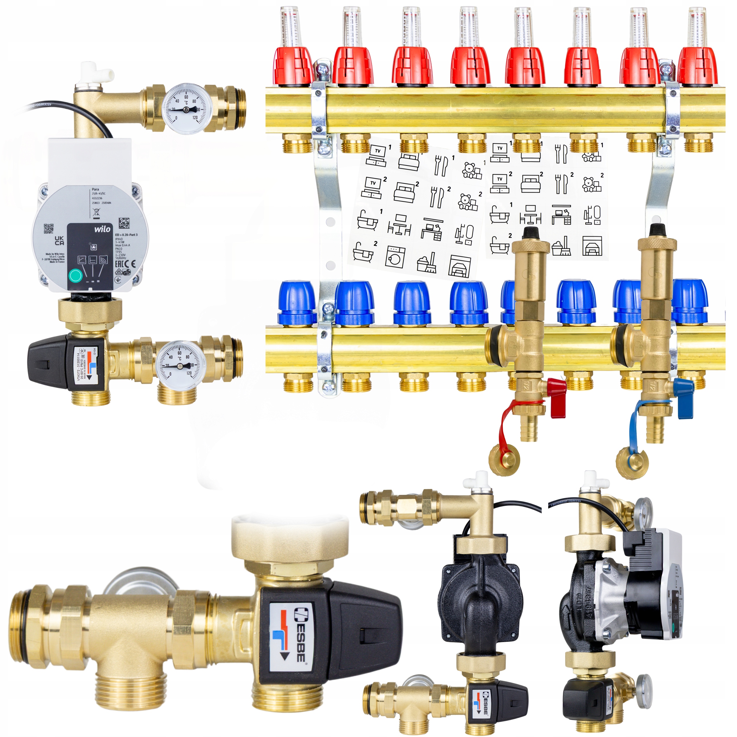 Розпліттер підлоги 8 Підлога Опалення з насосом клапан Віло Есбе
