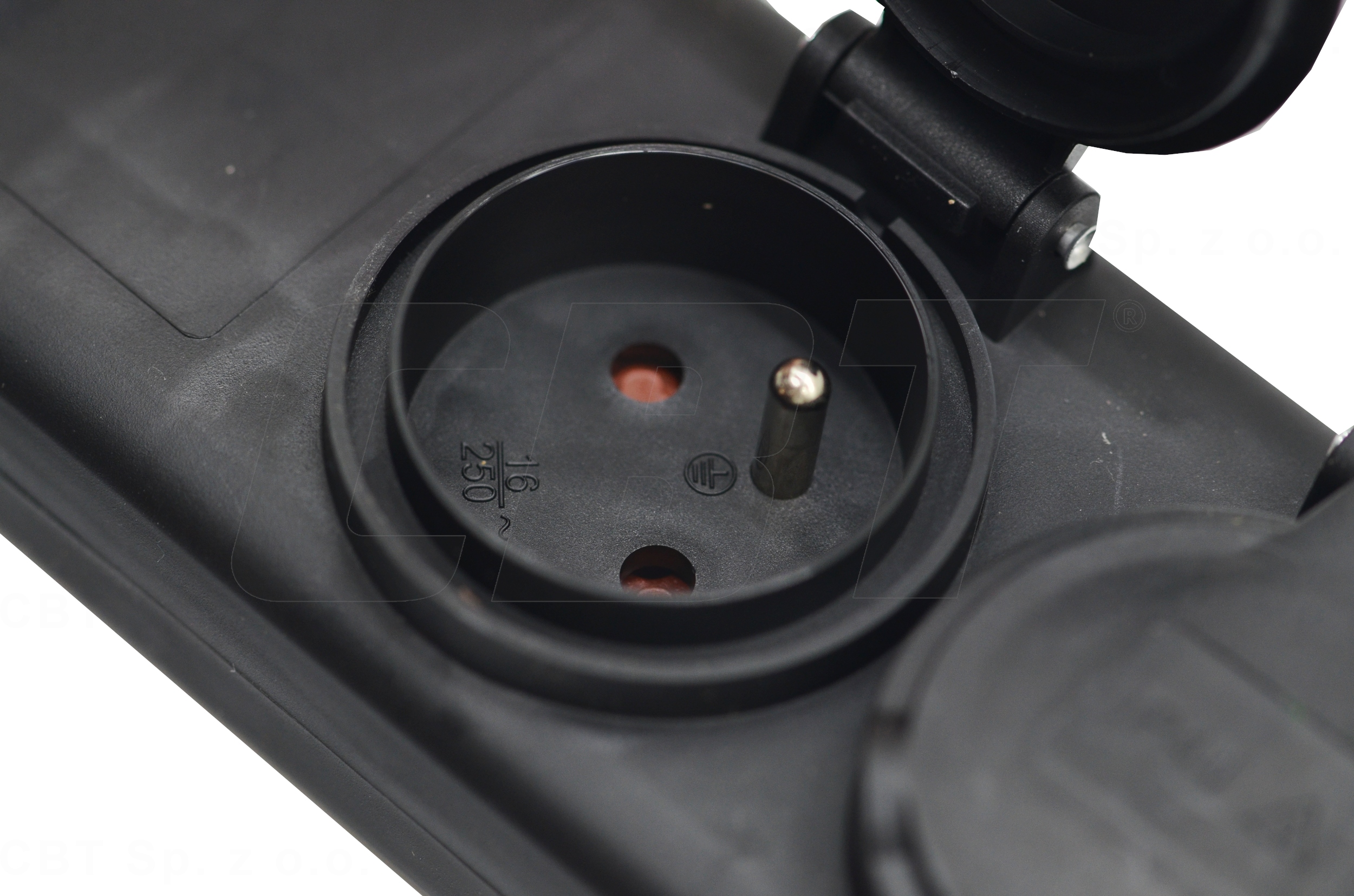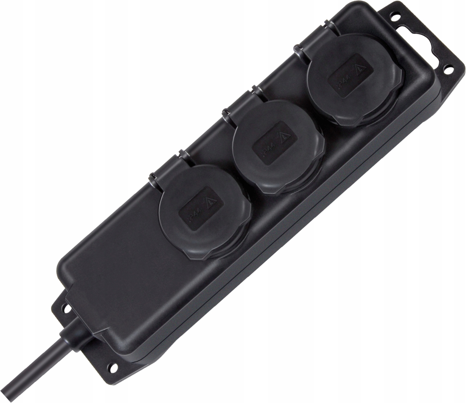 Крім того, зовнішній подовжувач живленнязахищений від сторонніх предметів і бризок води - має три розетки самозакриваються кришки.