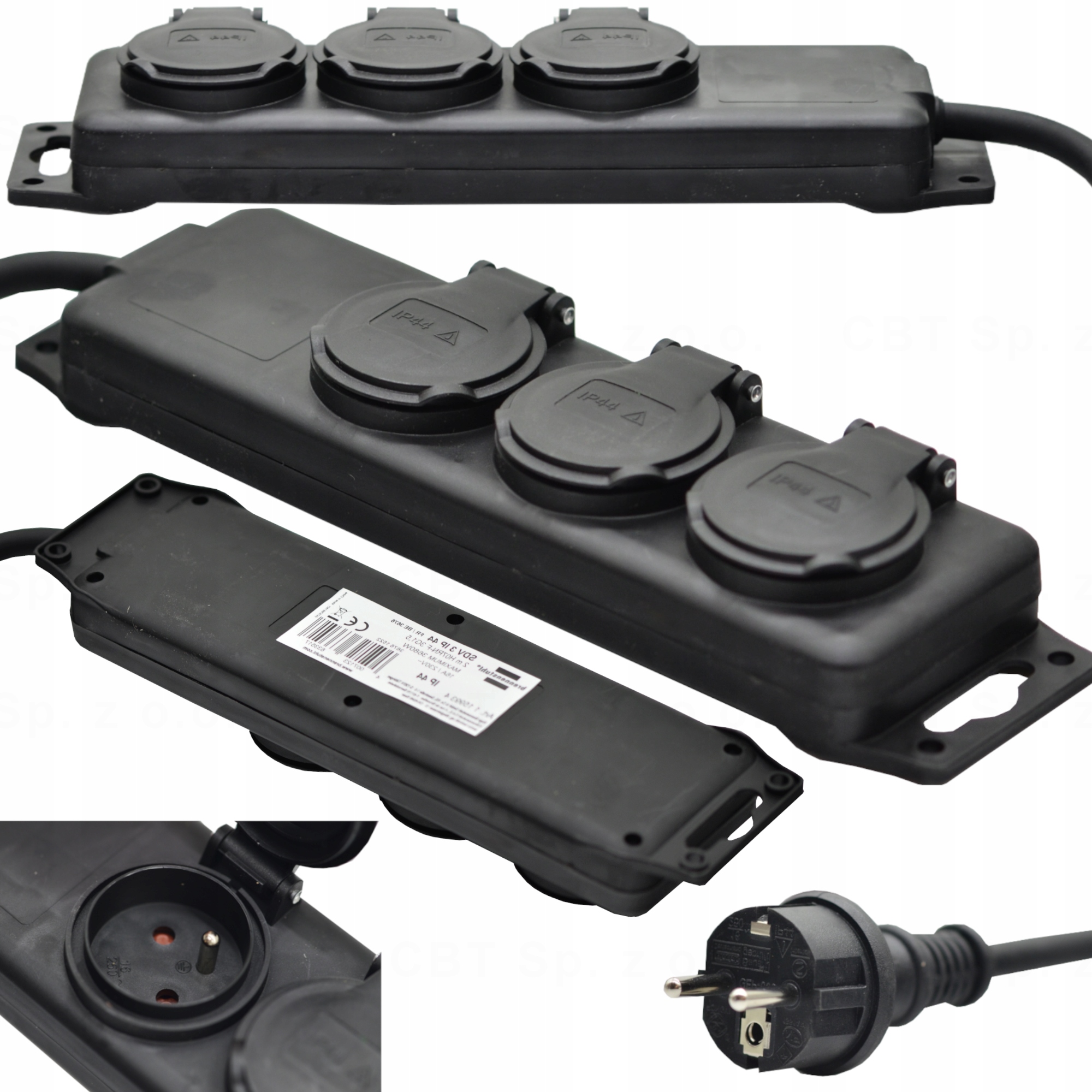 Подовжувач живлення з міцним і стійким корпусом, захистом від пилу та бризок води IP44