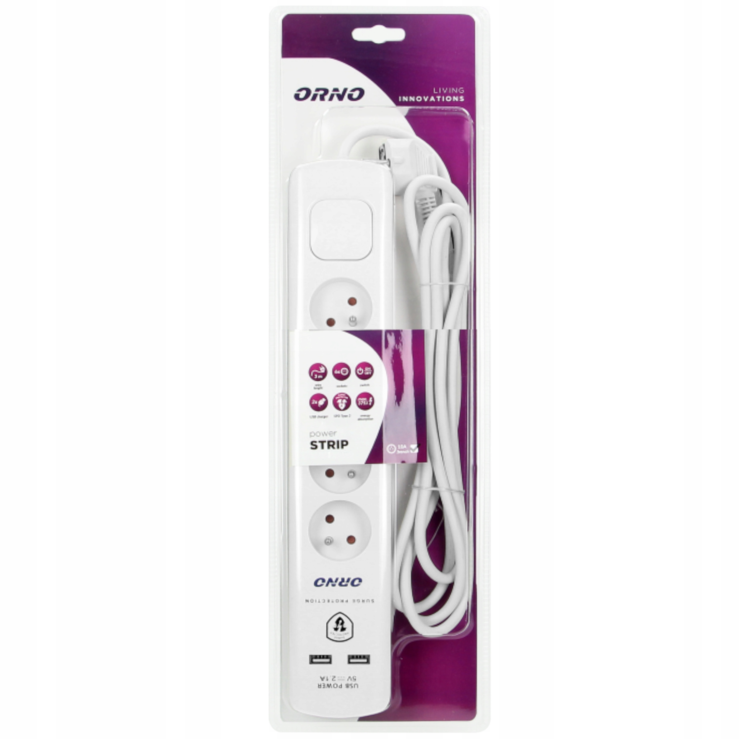 ПОДОДІВЧИК ЖИВЛЕННЯ ЗАХИСТУ 4 РОЗЕТКИ + 2 USB, 3 МЕТРИ КАБЕЛЬ