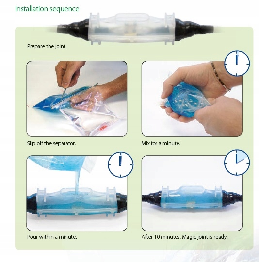Швидке та чисте встановлення з можливістю легкого видалення гелю та повторного з’єднання дозволяє багаторазово використовувати муфту.