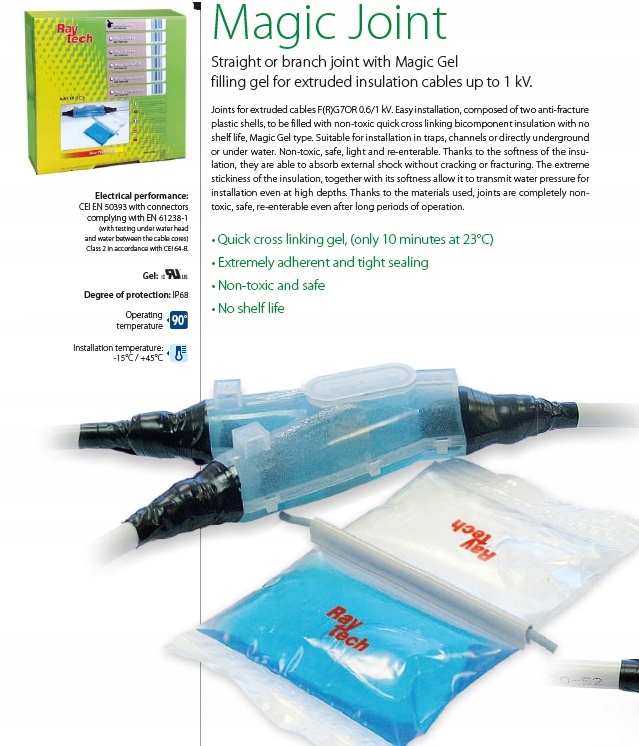 РОЗПОДІЛЬНА КОРОБКА GEL IP68 GELBOX MAGIC JOINT Y6 RAYTECH 180x90x45 мм MAGIC-JOINT-Y6
