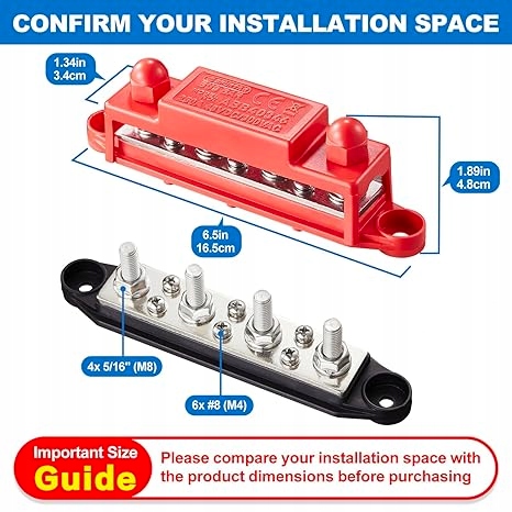 - У комплекті: розподільний блок, шпильки M8, гвинти M4 і захисна кришка 🛡️