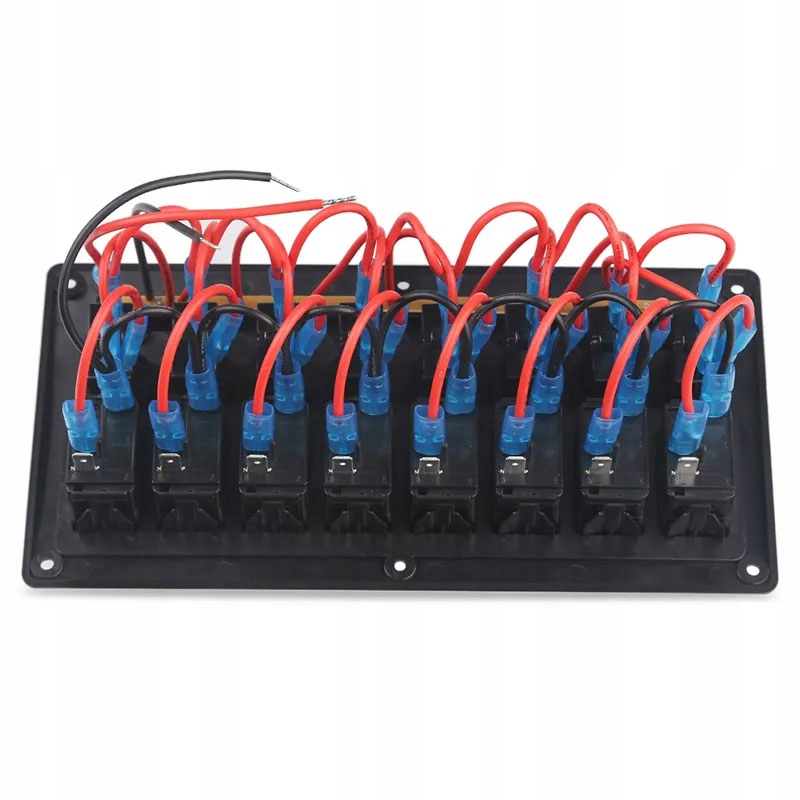 Електричний перемикач з 8 світлодіодними вимикачами. Має автоматичні запобіжники. Синя підсвічування, вертикальна або горизонтальна установка. Гвинти та наклейки включені.