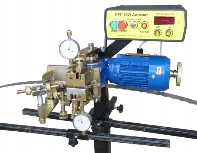 Проводка ПРЛ-60Вт (авто) призначена для високопродуктивної розводки зубів стрічкових пилок шириною від 23 до 60 мм. За допомогою розкидного пристрою PRL-60W (авто) можна в автоматичному режимі розвести два зуби одночасно. Таким чином можна істотно заощадити час на потоншенні зуба стрічкової пилки. Крім того, пристрій для проріджування зубів пилки можна регулювати по висоті, що забезпечує комфорт роботи оператора.