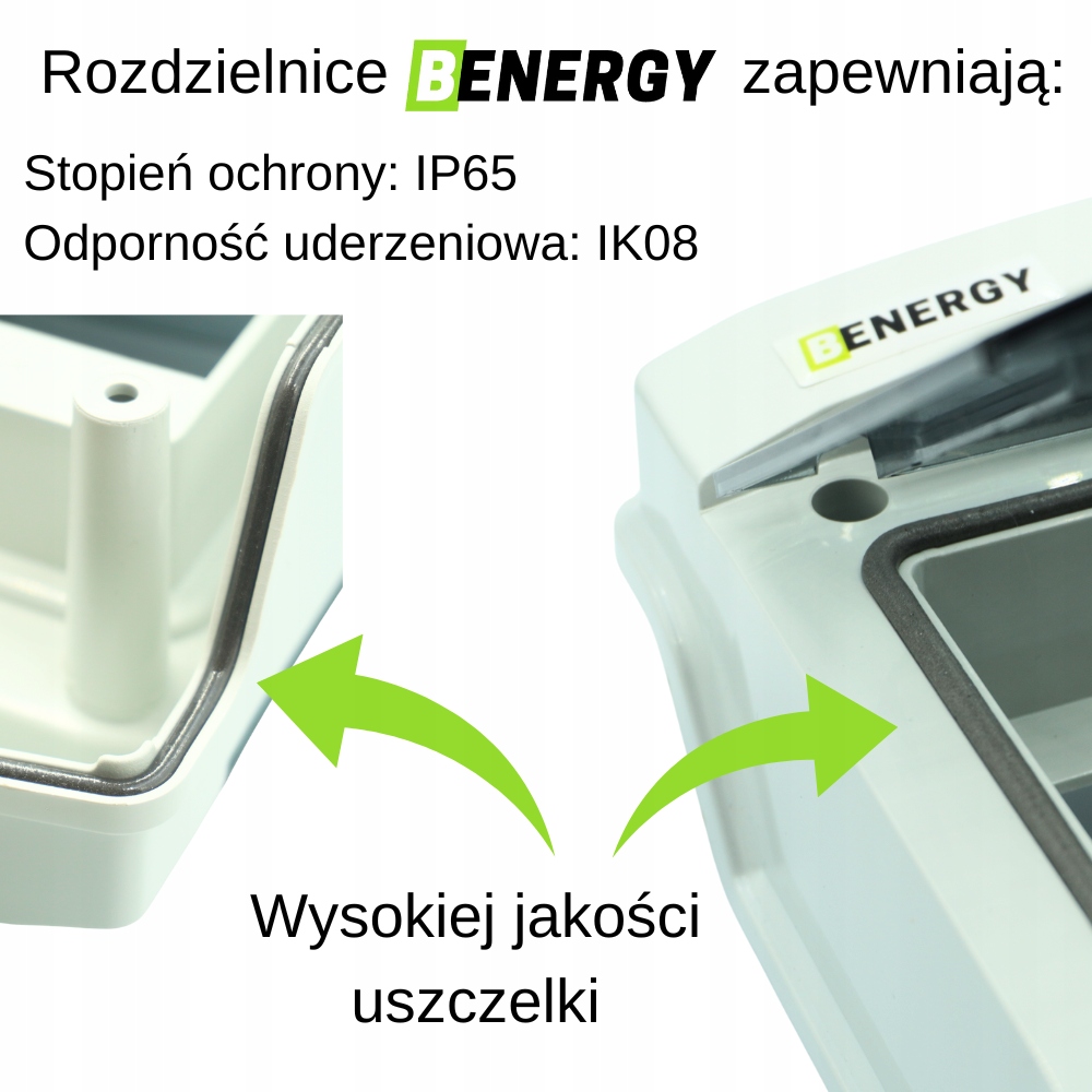 Корпуси розподільних пристроїв BENERGY виготовлені з високоякісних матеріалів. Завдяки з’єднувальному ущільненню всередині корпусу та ущільненню дверцят ви можете бути впевнені, що цінне обладнання всередині не буде пошкоджено!