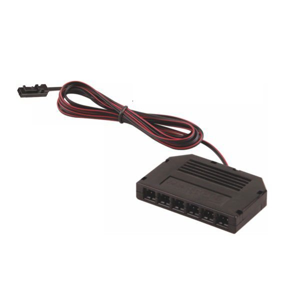 РОЗДІЛЬНИК 6-точковий міні з вилкою для кабель довжиною 2 м, закінчений розподільником, до якого можна підключити максимум 6 світильників (наприклад, затискачі або світлодіодні очі) за допомогою кабелю з міні-роз’ємом.