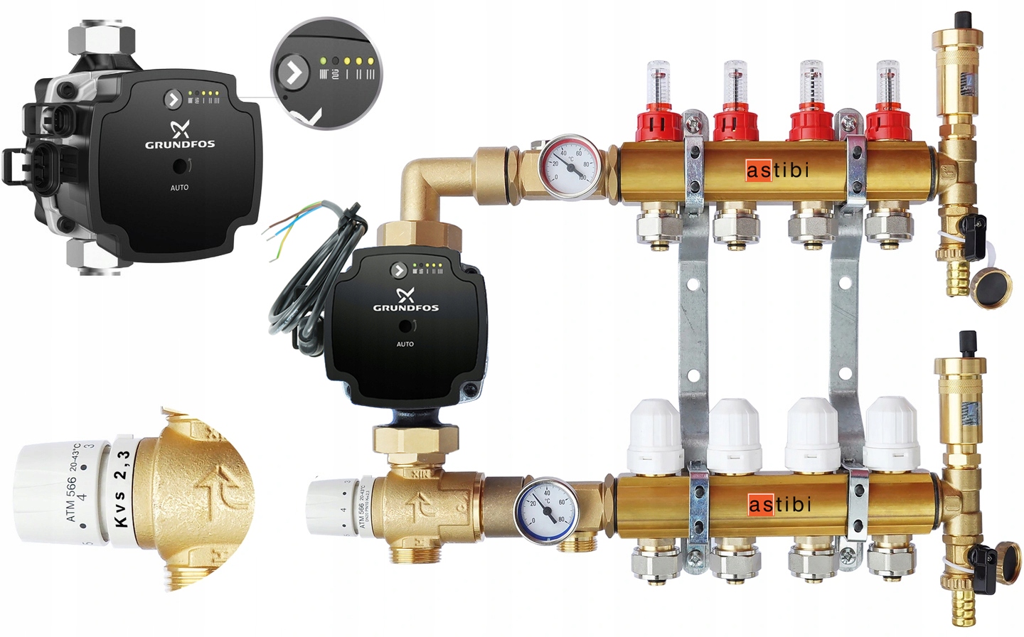 Маніфольд оснащений клапаном ATM 566 зі збільшеною витратою Kvs 2,3 м3/год - завдяки цьому рішенню тепла підлога нагріється набагато швидше, що призводить до значного зниження витрат на опалення.