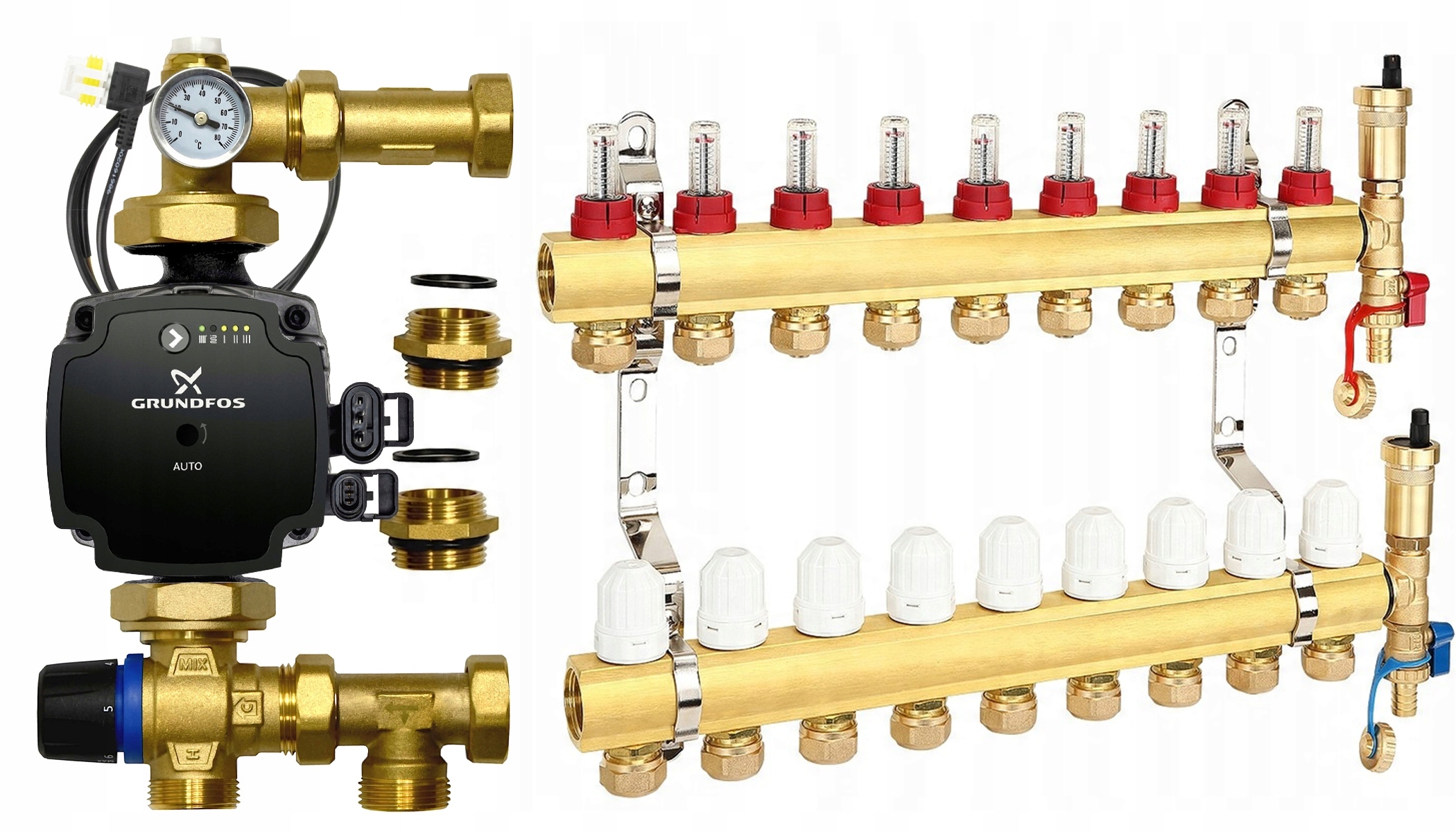 РОЗПОДІЛЬНИК 9 КОНТУРІВ ОПІЛЕННЯ ПІДЛОГИ ДЛЯ ПІДЛОГОВОГО УСТАНОВКИ GRUNDFOS PUMP