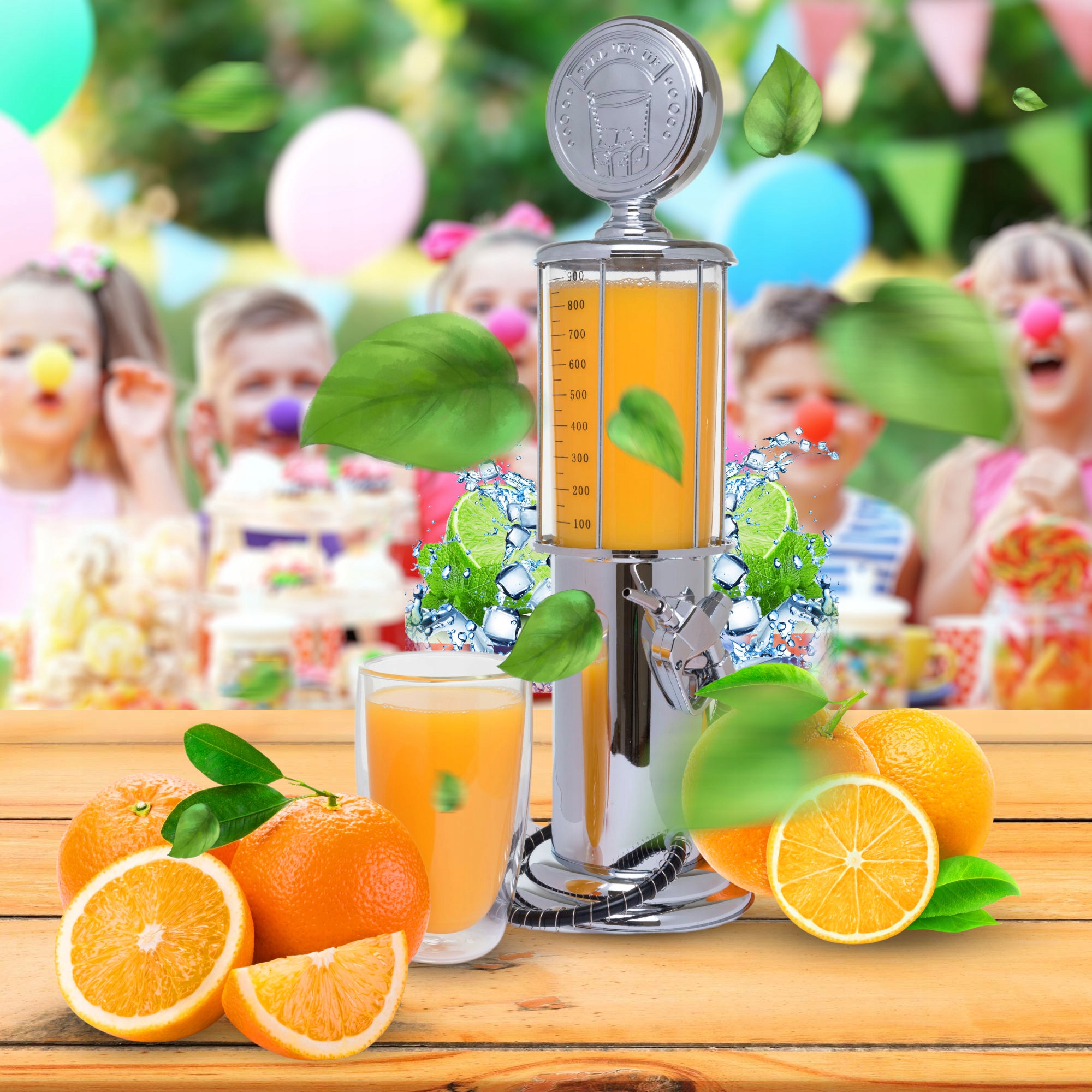 Об’єм диспенсера становить 950 мл, тож вам не доведеться час від часу наповнювати його. Як ми наповнюємо склянки? Точно так само заправляємося. Візьміться за ручку на кінці шланга (довжина 56 см), натисніть і наповніть бак до повного або скільки завгодно! Це дуже ефективний спосіб поповнити свій напій! Єдине, про що вам потрібно подбати під час вечірки, це переконатися, що ваші гості не говорять про ціни на паливо!