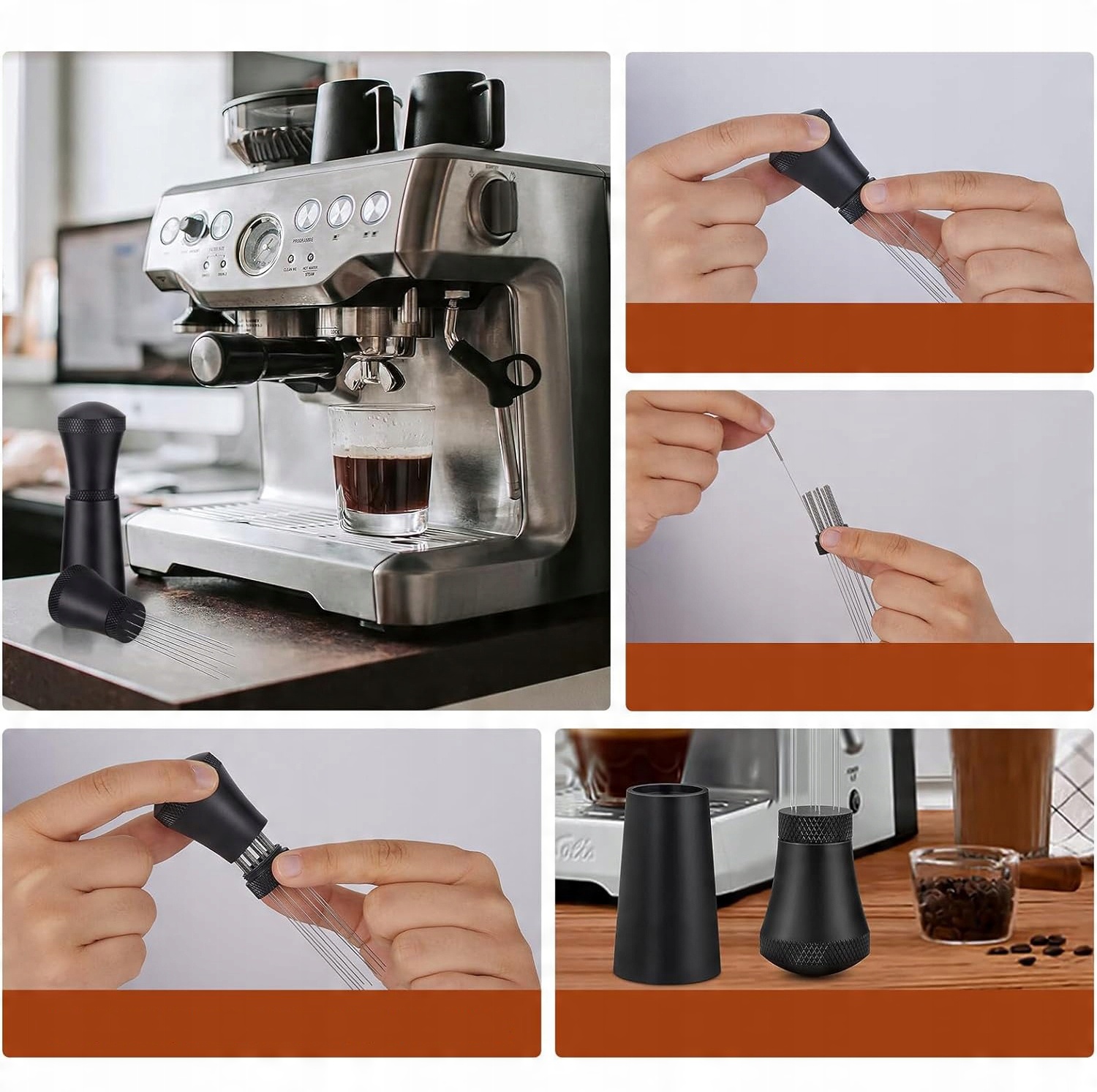 ☕☕ Рівномірне змішування: Цей інструмент для змішування кави використовує 7 тонких голок діаметром 0,3 мм, і блендер розбиває будь-які шматочки, забезпечуючи рівномірну густину кави в еспресо-машині. Це допомагає вам рівномірніше витягнути каву та отримати високоякісний еспресо, як бариста.