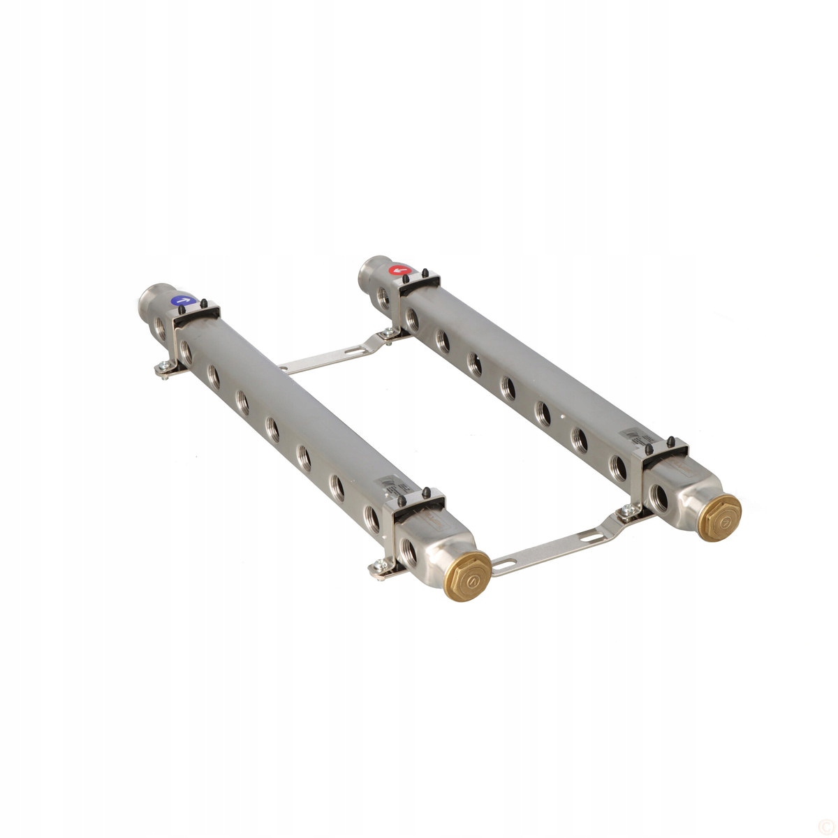 Технічні дані: Максимальний тиск: 1,0 МПа Максимальна температура: 95°C Матеріали: • Сталева балка G1 x 2 шт. • Тримачі розподільника x 1 комплект. • Вилка розподільника G1 x 2 • Кульовий кран MINI з роз’ємом PEX/AL. G 1/2 • автоматичний повітрявідвідний клапан G1/2 x 2 шт. • зливний кульовий кран G1/2 х 2 шт.