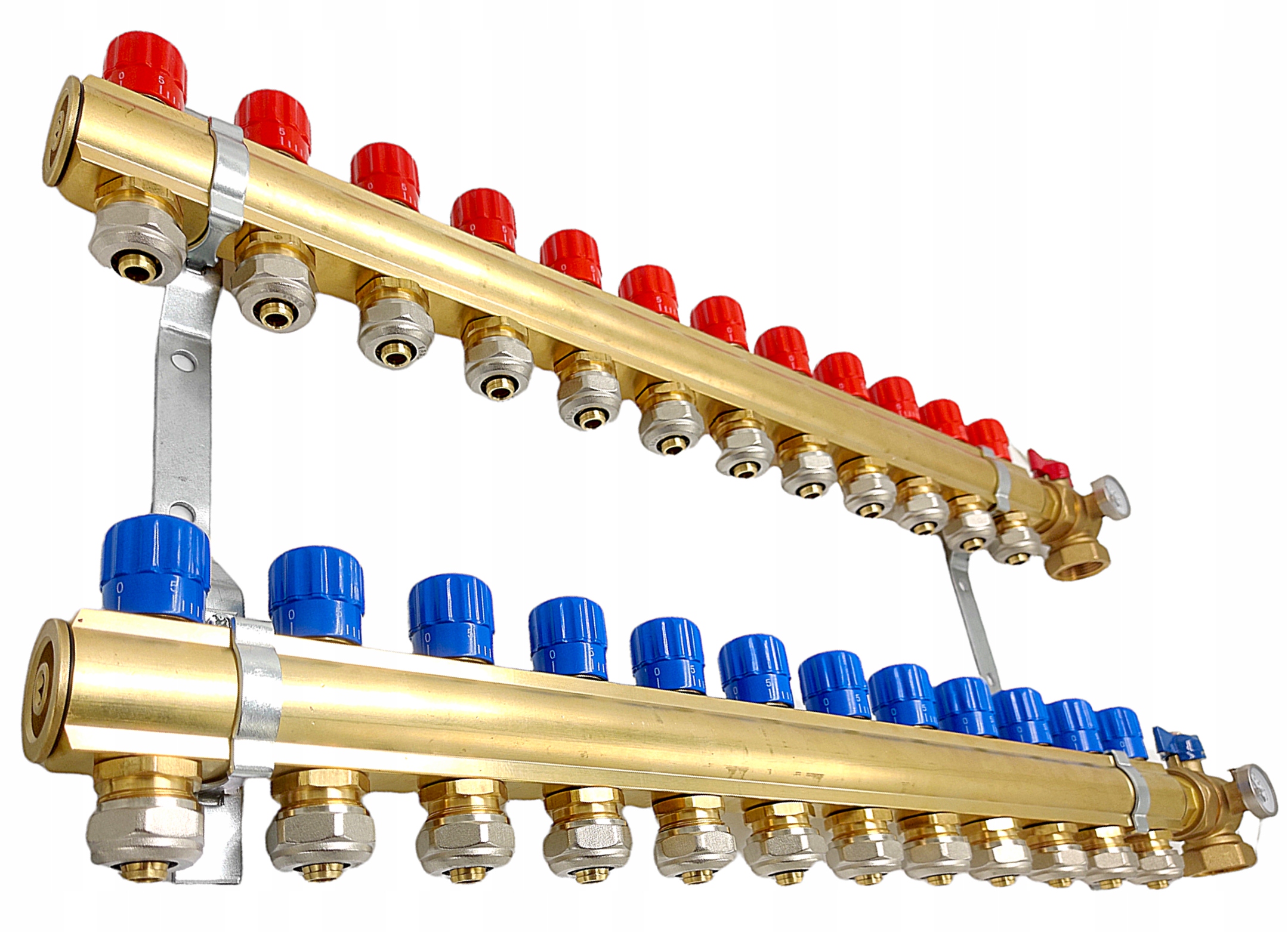 14-секційний радіаторний розподільник + роз'єми + вентилі з термометром