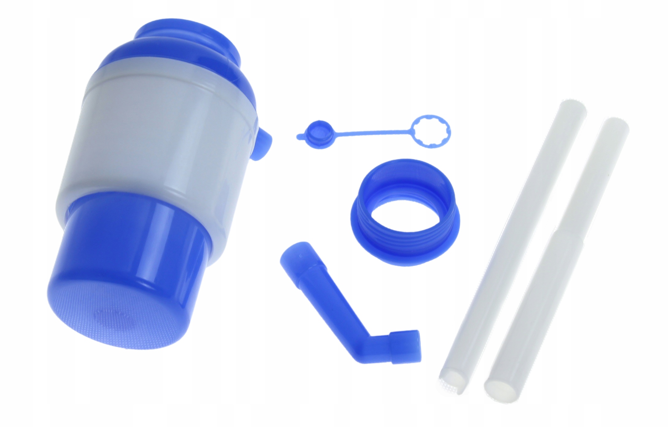 - ЛЕГКО ЗБИРАТИ – b>просто зберіть елементи трубки всмоктування та прикріпіть їх до розподільника, потім прикріпіть усе до різьби більшої пляшки та притисніть її, щоб усе було щільно, і насос був готовий до роботи.