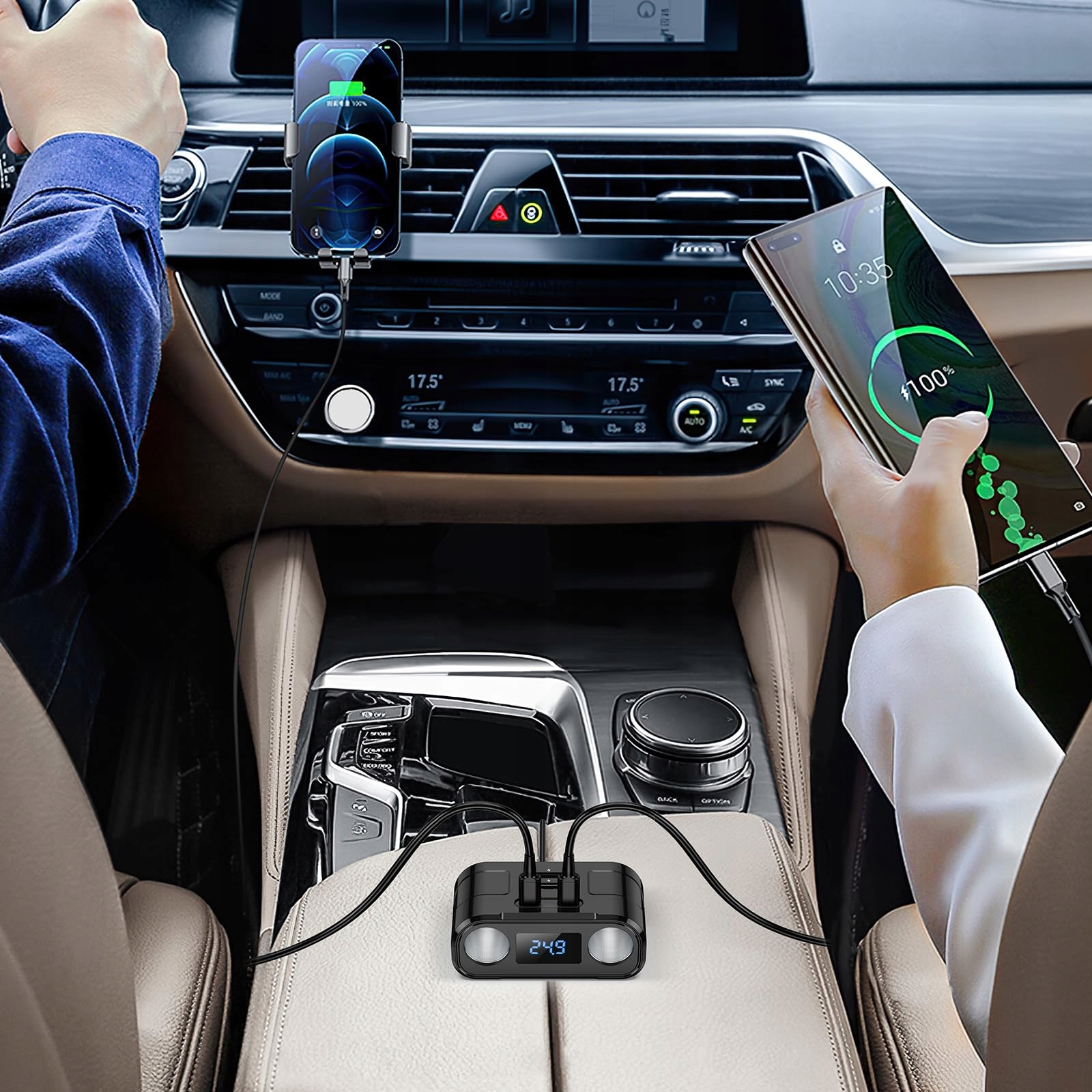 1. Розумний автомобільний зарядний пристрій: це гніздо для автомобільного прикурювача служить розумним автомобільним зарядним пристроєм у дизайні від одного до шести. Він оснащений швидкою зарядкою PD22W і забезпечує ефективне живлення. Максимальна вихідна потужність 60 Вт і визначення напруги забезпечують оптимальну ефективність заряджання.