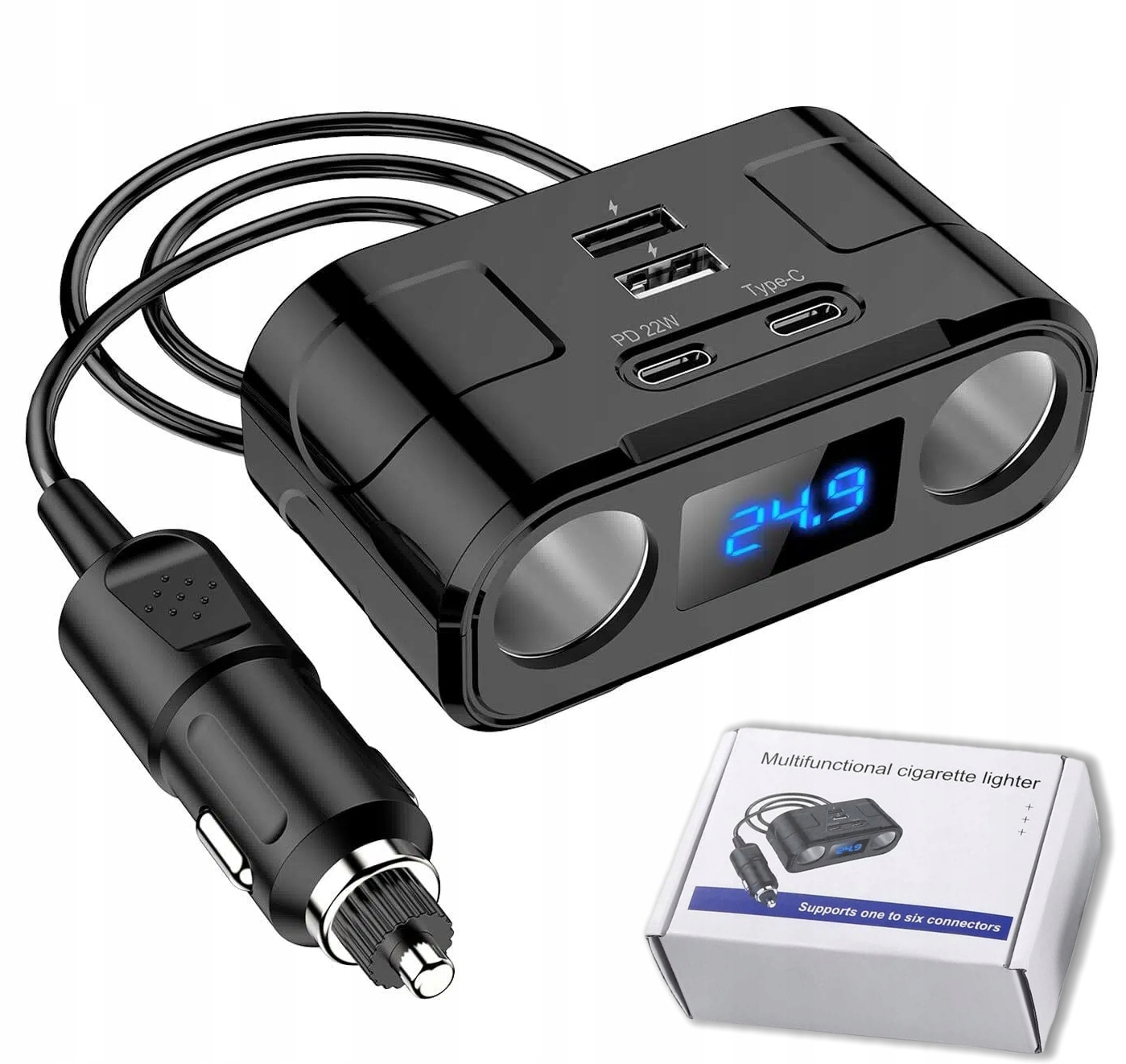 РОЗПОДІЛЬНИК ЗАПАЛИВКИ 12-24V 2xUSB AUTO 2xUSB-C PD 60W РОЗПОДІЛЬНИК