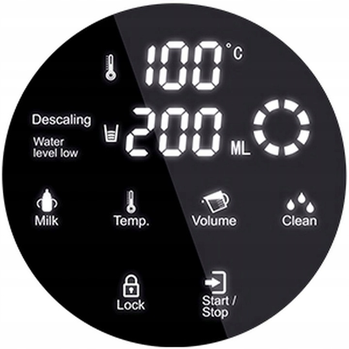 різні параметри температури: 40 - 100 ° C та кнопка прямого вибору для точної підготовки дитячого молока (40 ° C).