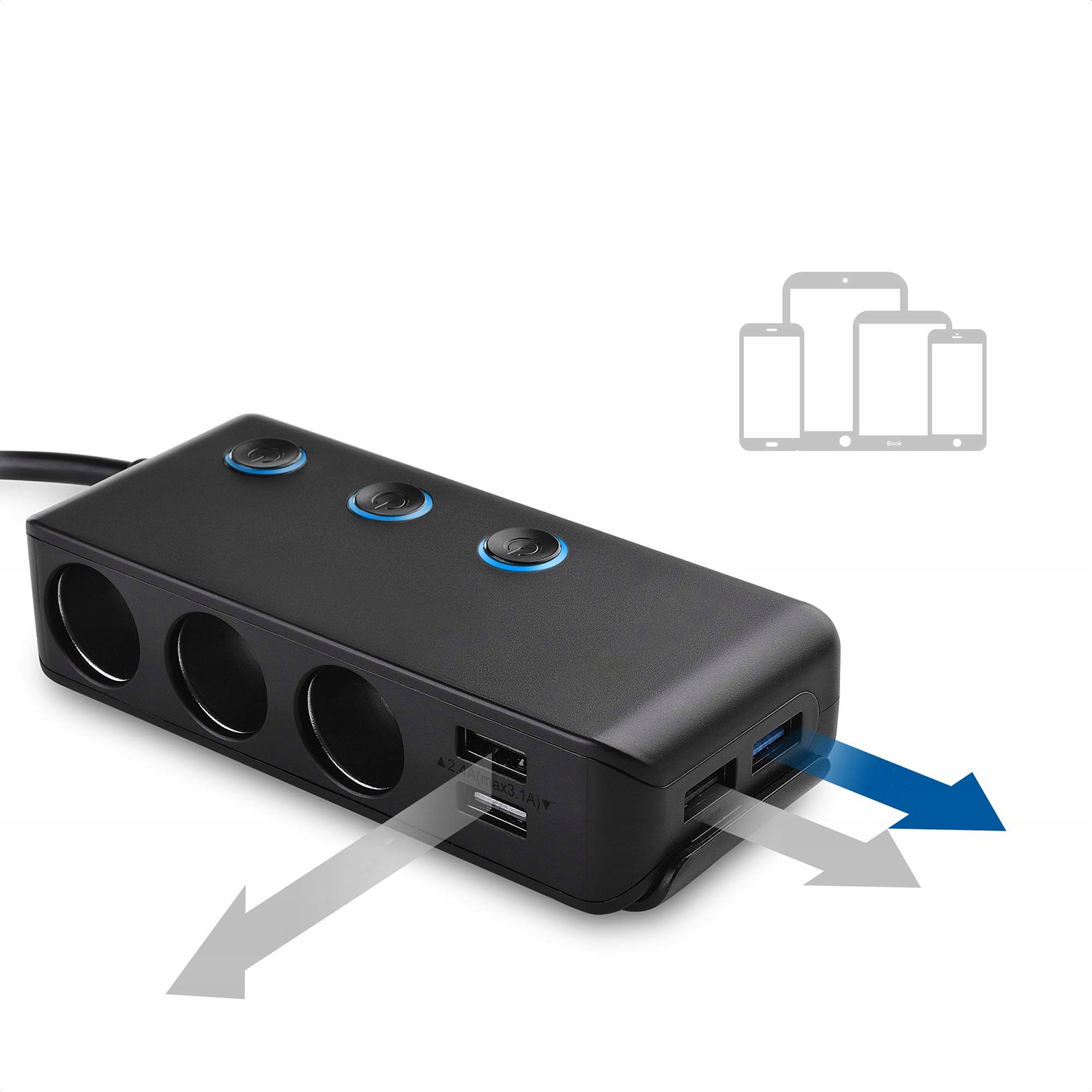 - інтегрована інтелектуальна система інтелектуально виявляє пристрій та зарядний пристрій, щоб заряджати їх з оптимальним струмом. - Розширює один легший автомобіль до трьох більш легких розетків (з незалежними комутаторами) та чотирма портами USB.