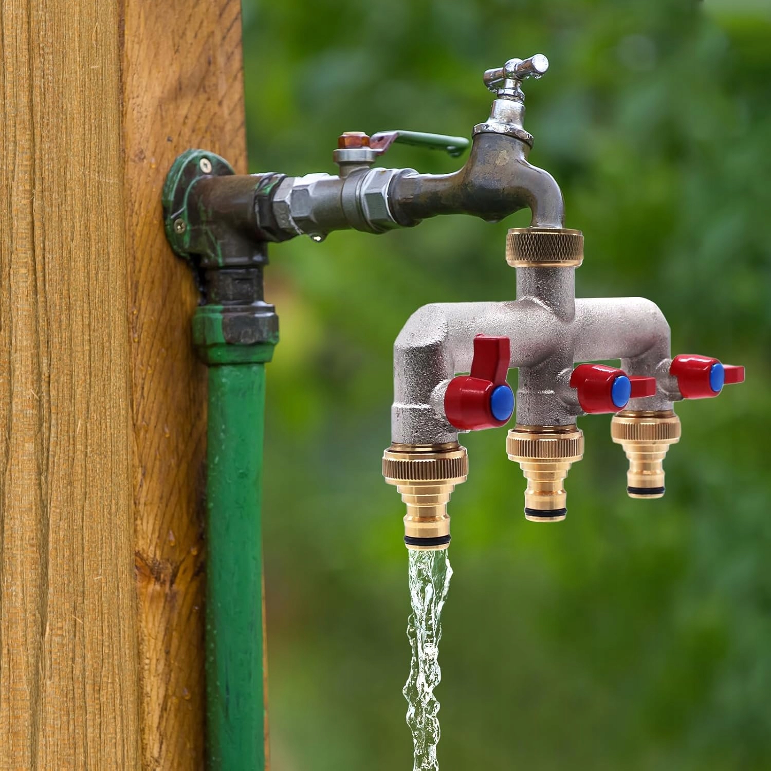 - 3-х шлях-роз'єм крана оснащений 3 незалежними водними клапанами для управління потоком та відсіканням. Кожен садовий кран має індивідуальне регулювання клапана, тому ви можете вільно контролювати потік води, закрити його і відрегулювати. 4