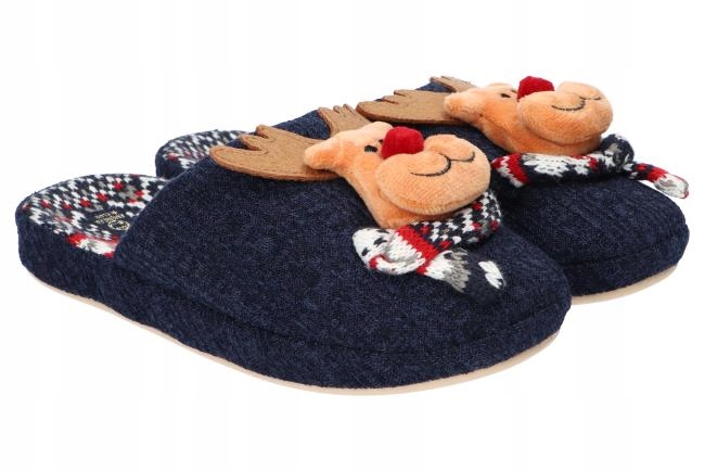 РОЗПРОДАЖ АМЕРИКАНСЬКІ ТЕПЛІ ТАПОЧКИ РІЗДВЯНІ ТАПОЧКИ З ОЛЕНЕМ СИНІ 38