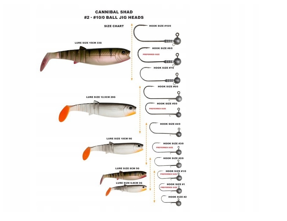 Приманка виготовлена з особливою ретельністю та увагою до деталей. Корпус зроблений з досить твердого силікону (досить стійкий до зубів щуки для імітації гуми), а хвостова частина виготовлена з трохи м'якшої суміші, що забезпечує привабливу дію хвоста. Крім того, Канібал став більш привабливим завдяки спинному та анальному плавцям, що створюють додатковий привабливий ефект.