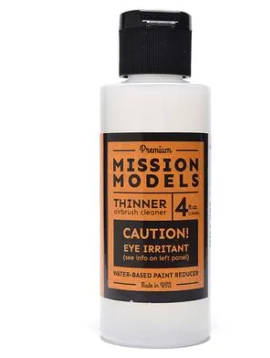 MISSION MODELS Розріджувач для акрилу 120 мл Розріджувач дуже ефективний і потрібна лише невелика кількість. Після додавання розріджувача в ємність для змішування фарба або грунтовка будуть здаватися занадто густими, ніж ви звикли. Це нормально. Після висихання фарби поверхня моделі буде гладкою, тонкою та рівною і не закриває/заливає навіть найдрібніші деталі моделі. Завдяки правильній пропорції розріджувача ви досягнете чудового непрозорого покриття, яке вимагає мінімум шарів.