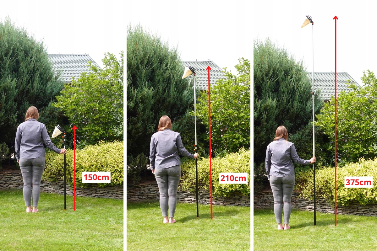 ➡️ Оснащений телескопічною ручкою з регульованою довжиною від 150 см до 375 см, завдяки якій ви можете дістатися навіть до найвищих гілок, не відриваючись від землі.
