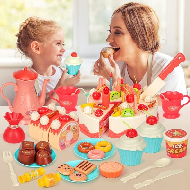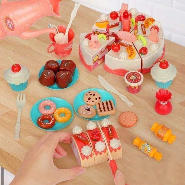 Внесіть радість і атмосферу свята в гру вашої дитини за допомогою набору з 82 елементів для вирізання торта до дня народження. Це ідеальний подарунок, який підтримує творчість і робить гру унікальною.