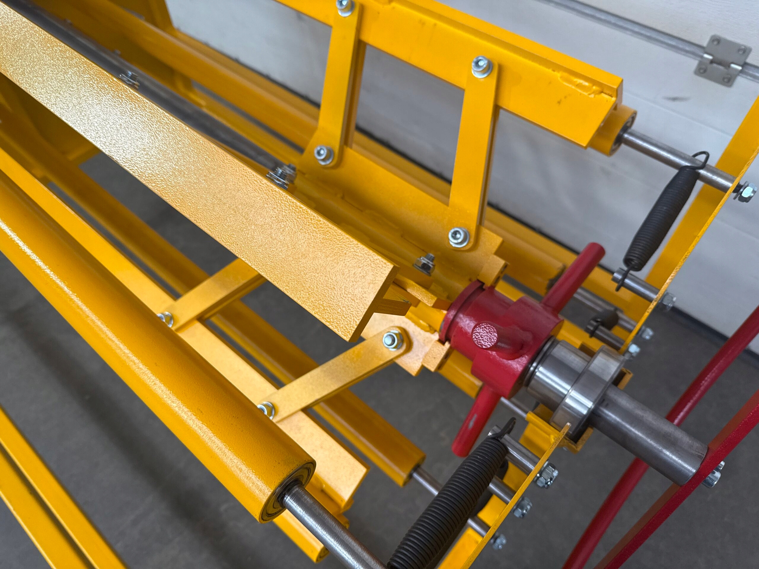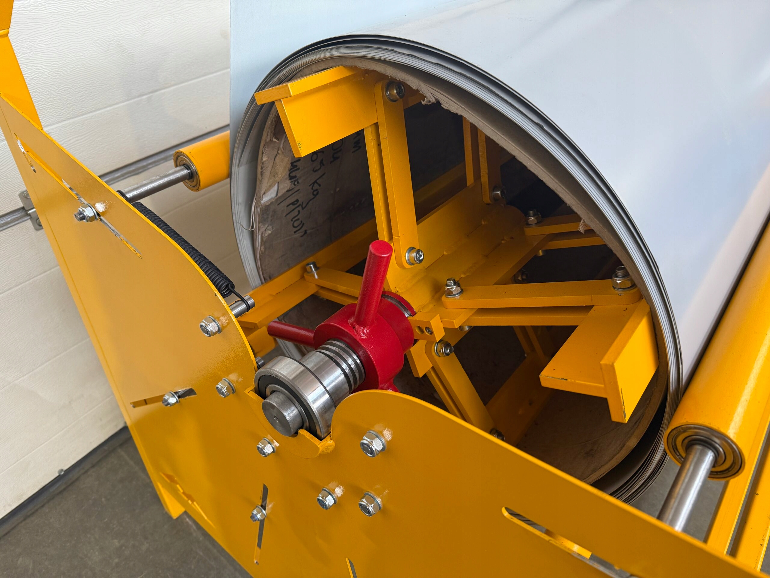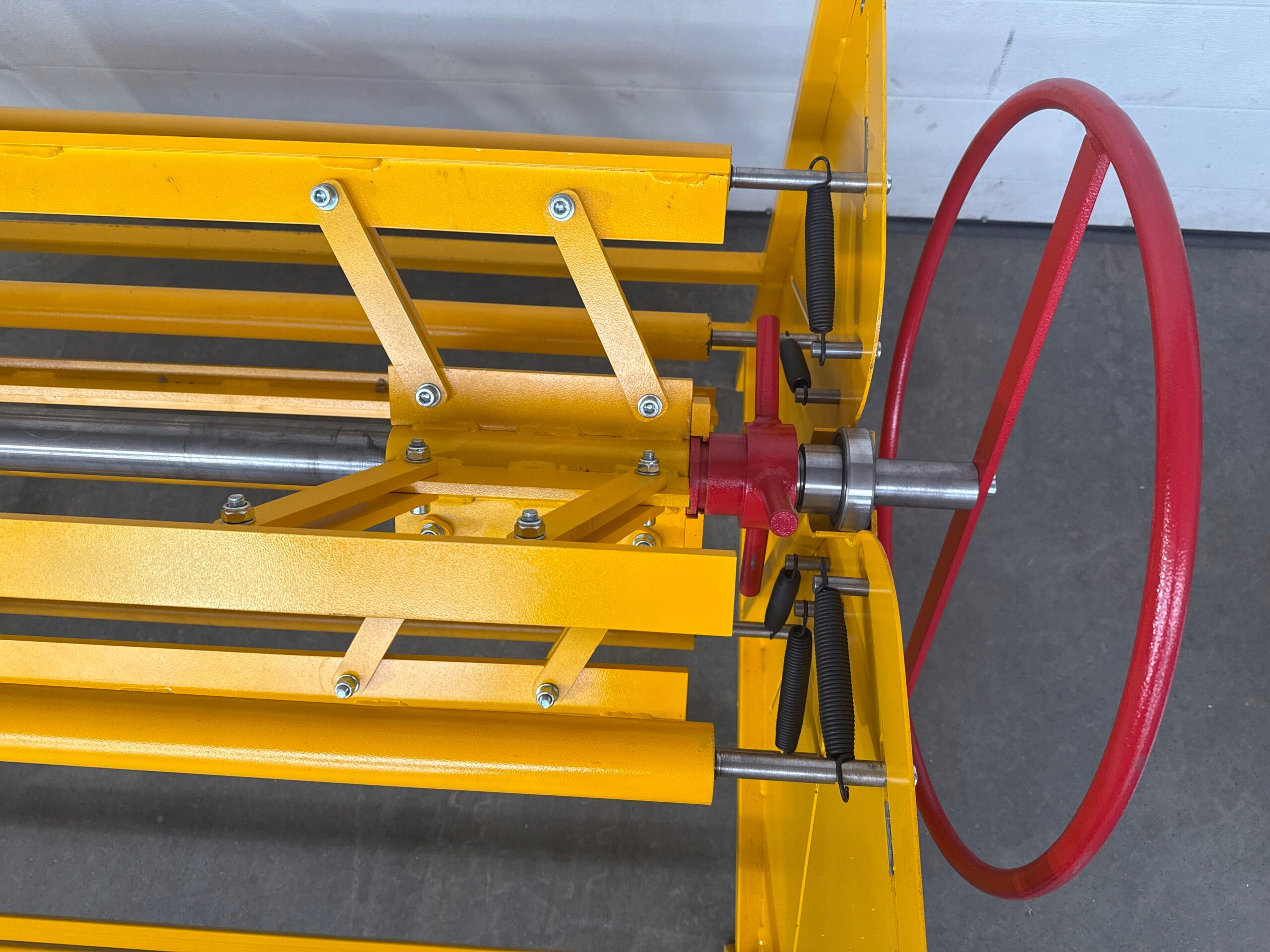 Ручний бізер, що розвивається для аркушів, шириною від 600 до 1500 мм до 2000 кг. Основа розробника з жорсткою конструкцією, виготовленою з сталевих профілів. Пристрій адаптується до внутрішнього діаметра кола кривошипами. Пристрій був побудований з метою збереження місця на складі. Розробник оснащений системою, щоб запобігти спонтанному розвитку аркушів з кола. Ви можете зарядити максимум 4 розробників один на одного. Можна встановити двигун з регулятором швидкості розвитку.
