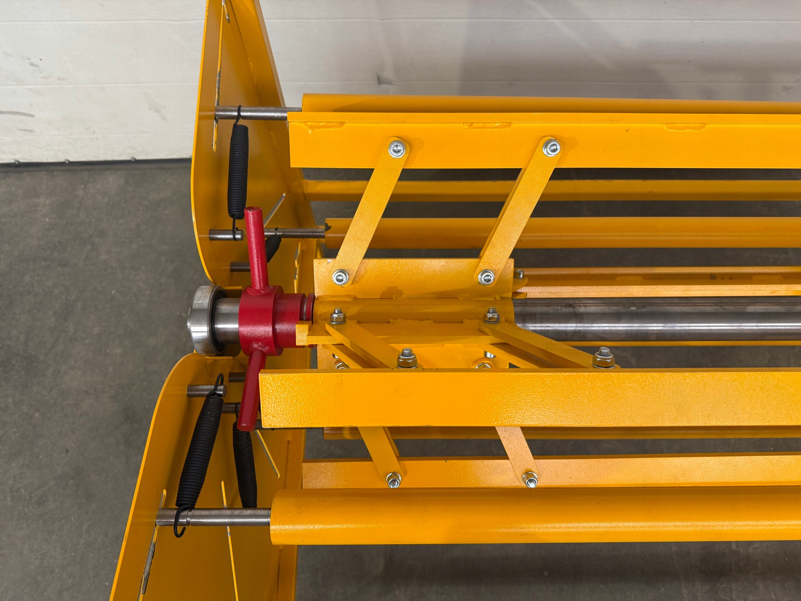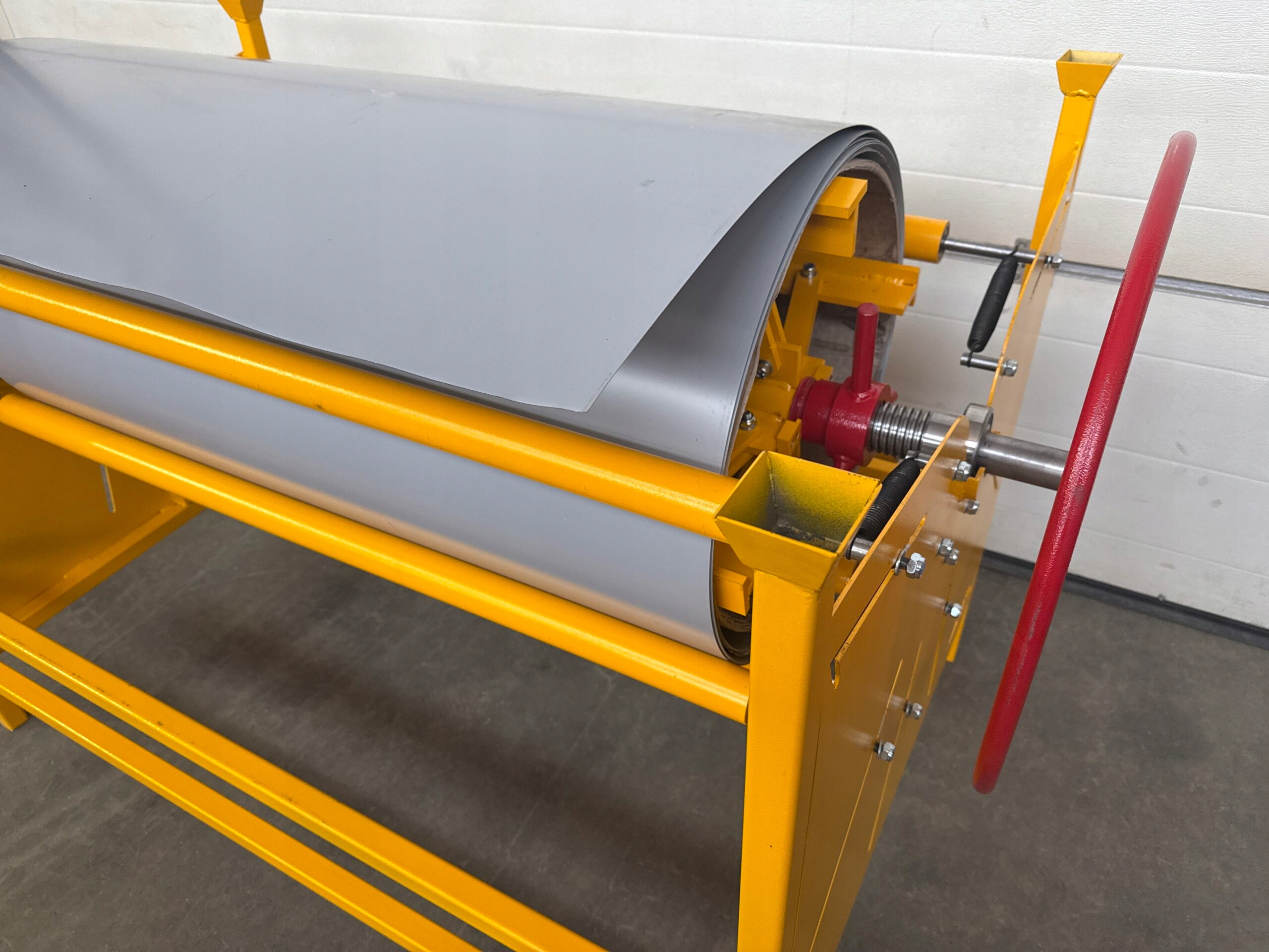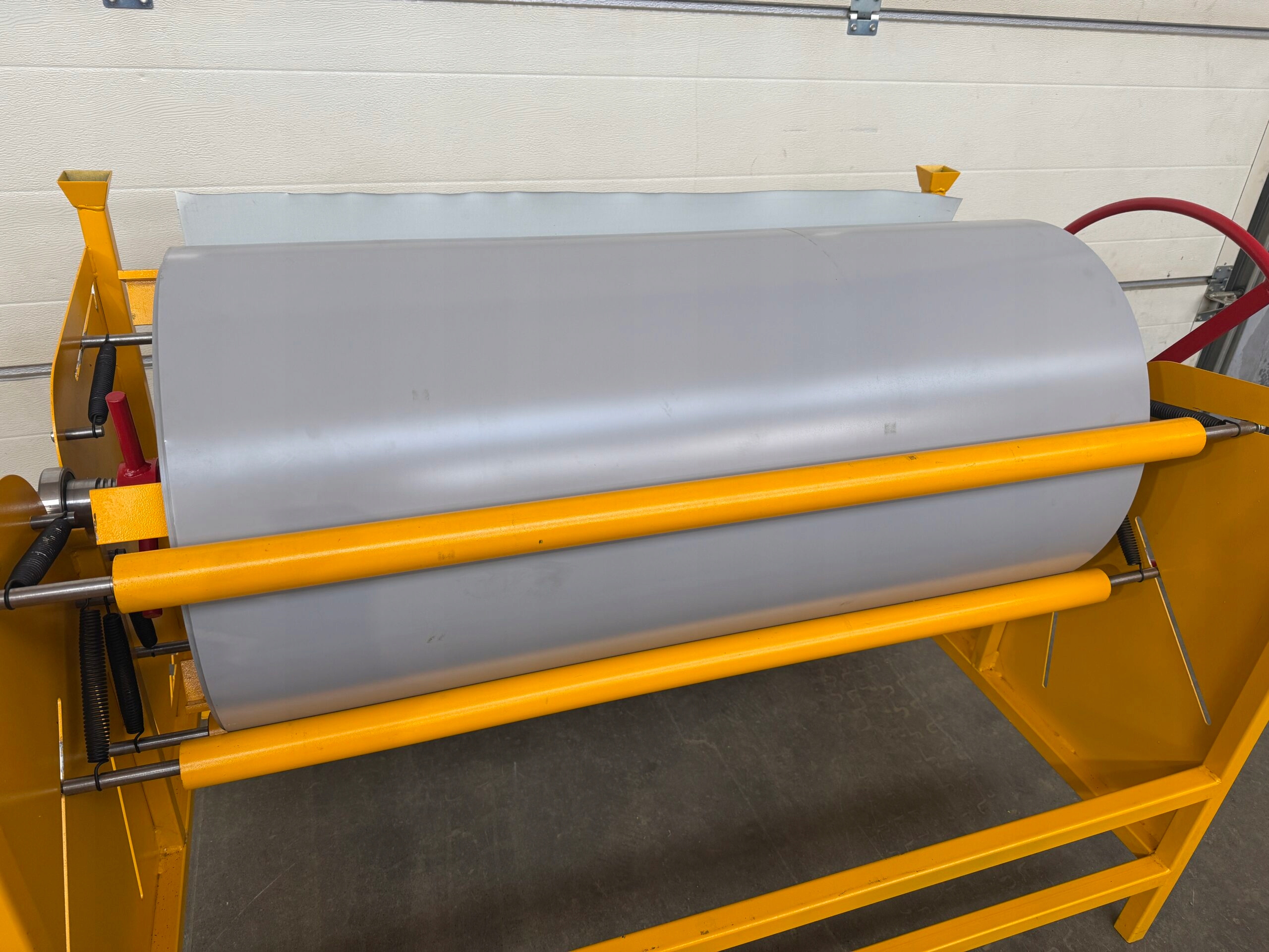 Ручний бізер, що розвивається для аркушів, шириною від 600 до 1500 мм до 2000 кг. Основа розробника з жорсткою конструкцією, виготовленою з сталевих профілів. Пристрій адаптується до внутрішнього діаметра кола кривошипами. Пристрій був побудований з метою збереження місця на складі. Розробник оснащений системою, щоб запобігти спонтанному розвитку аркушів з кола. Ви можете зарядити максимум 4 розробників один на одного. Можна встановити двигун з регулятором швидкості розвитку.